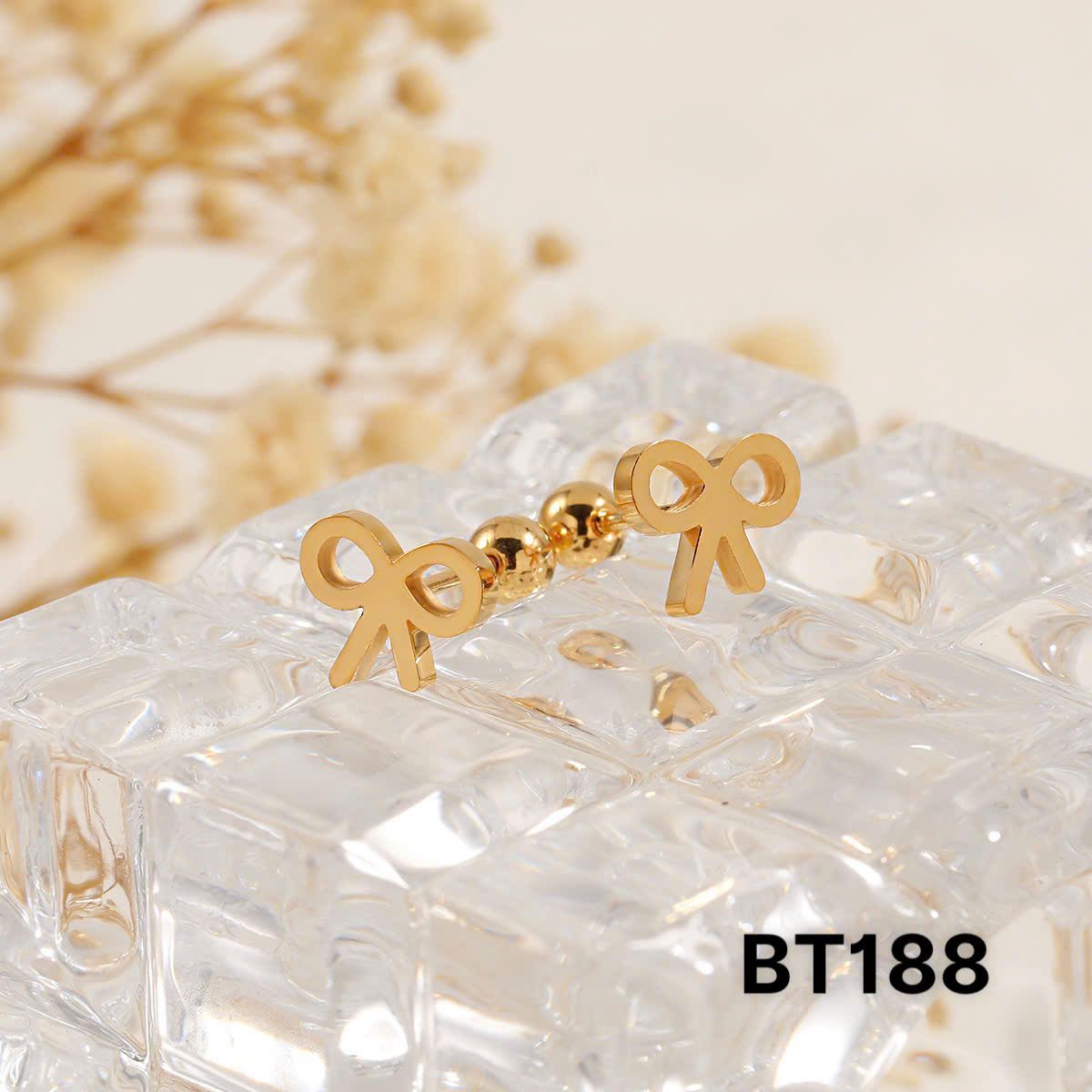 Bông tai nữ Titan SST Official Store Kiểu nơ trơn basic thanh lịch Không Đen Gỉ BT188