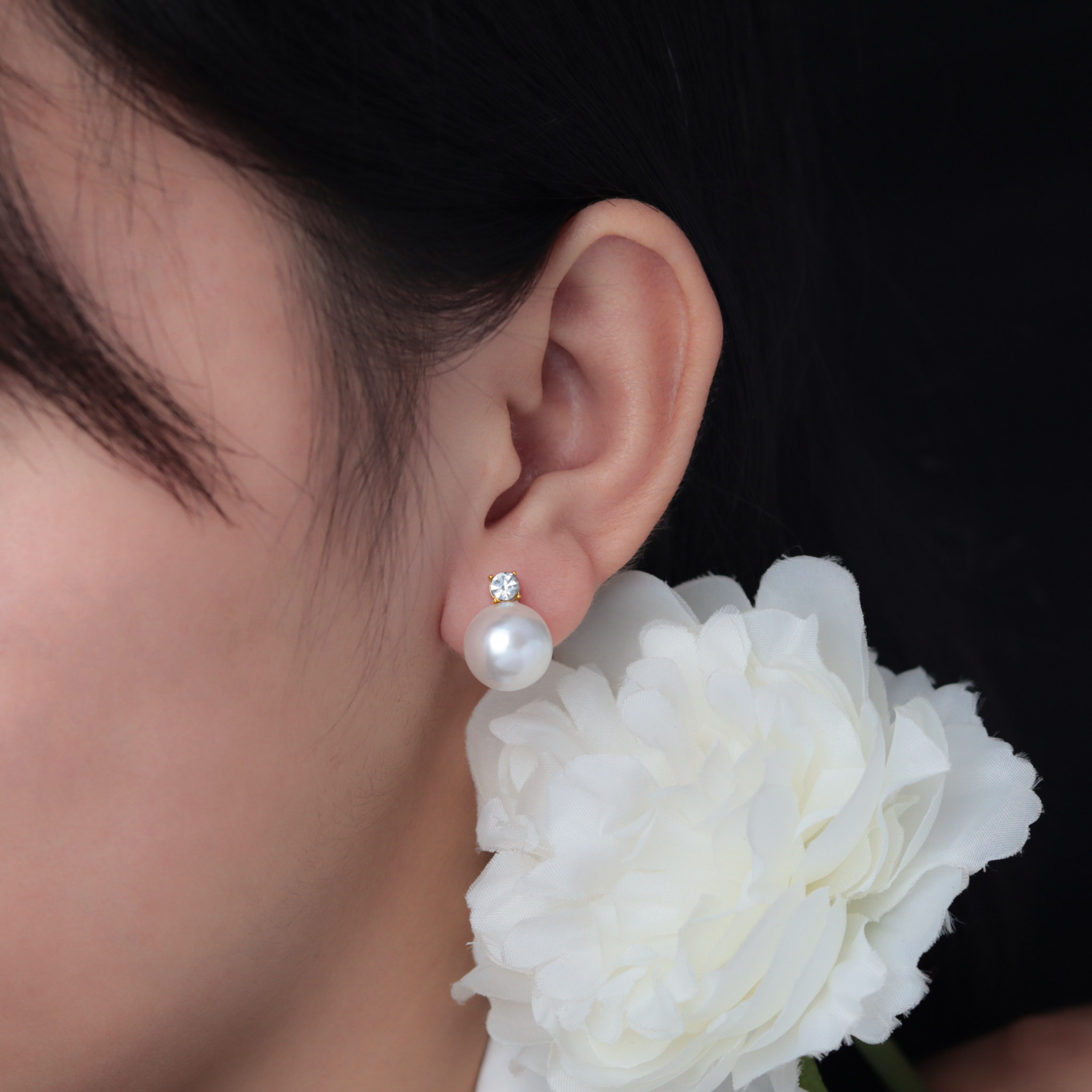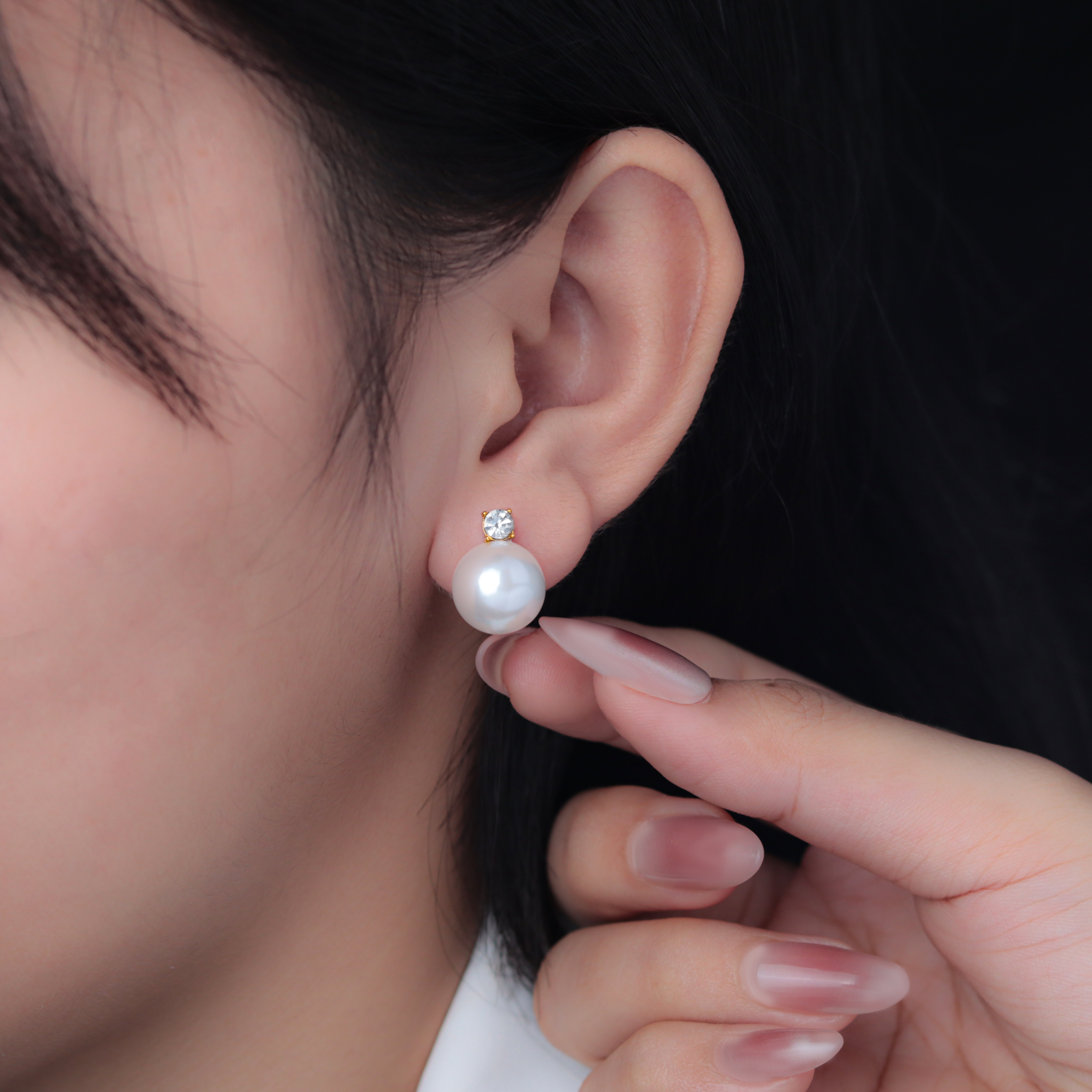 Bông tai Titan SST Ngọc trai phối đá Không Đen Gỉ BT126