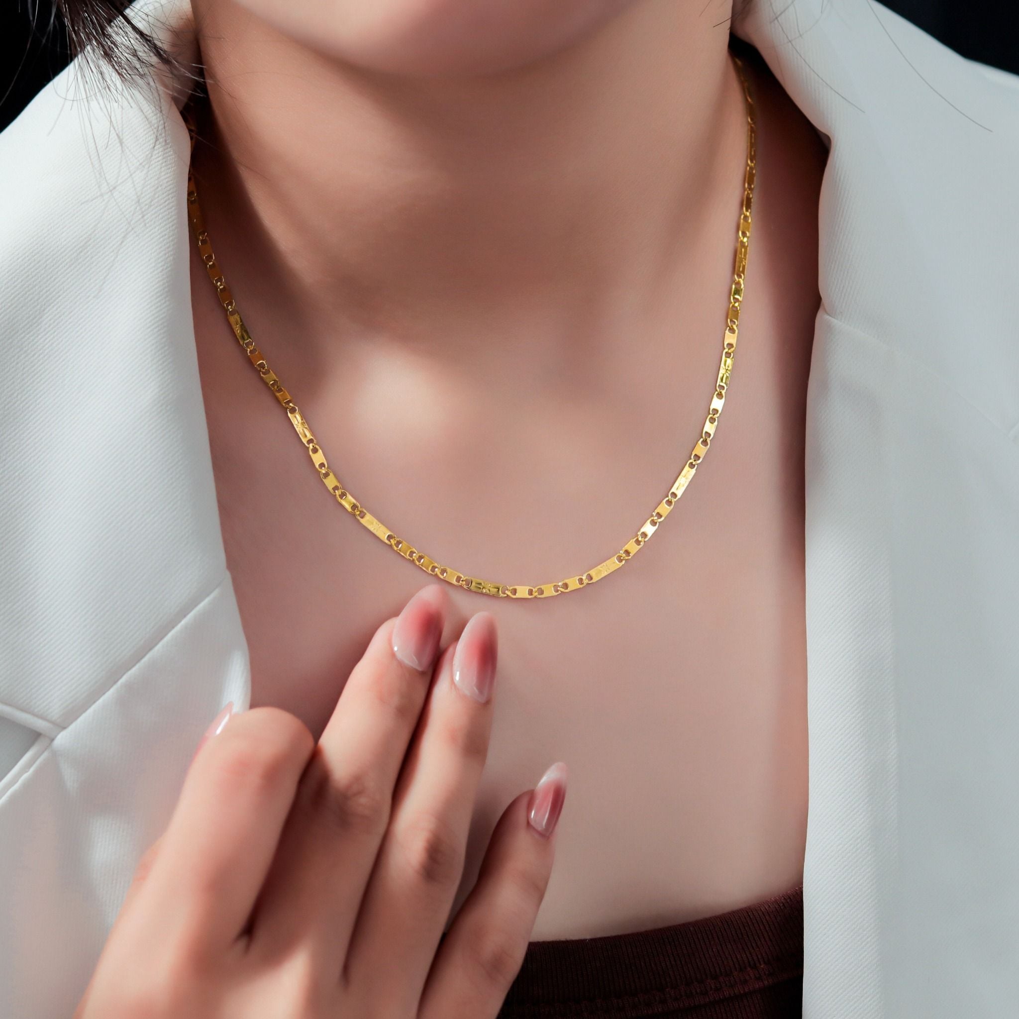 SST Official Dây Chuyền Nữ Bản Dẹt Khóa Tròn Titan Không Gỉ Bền Màu Thanh Lịch VC537