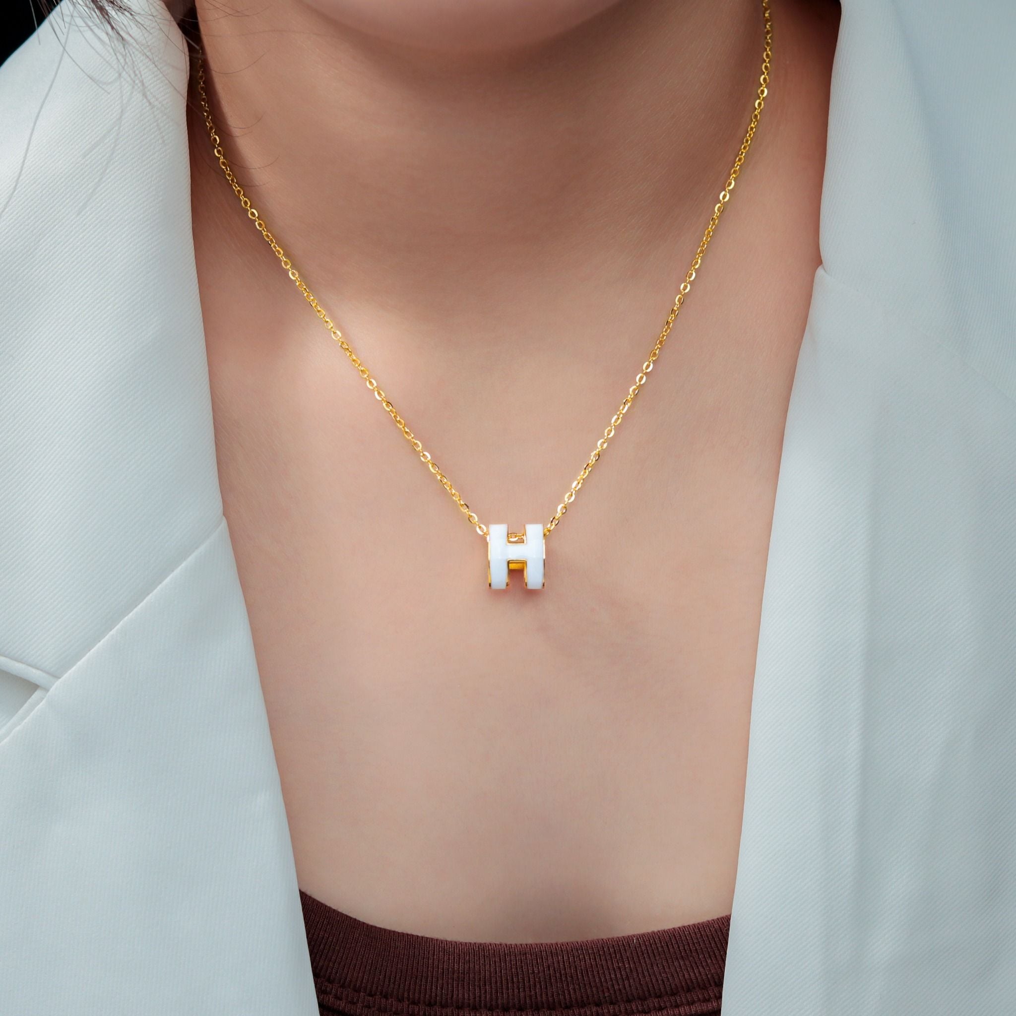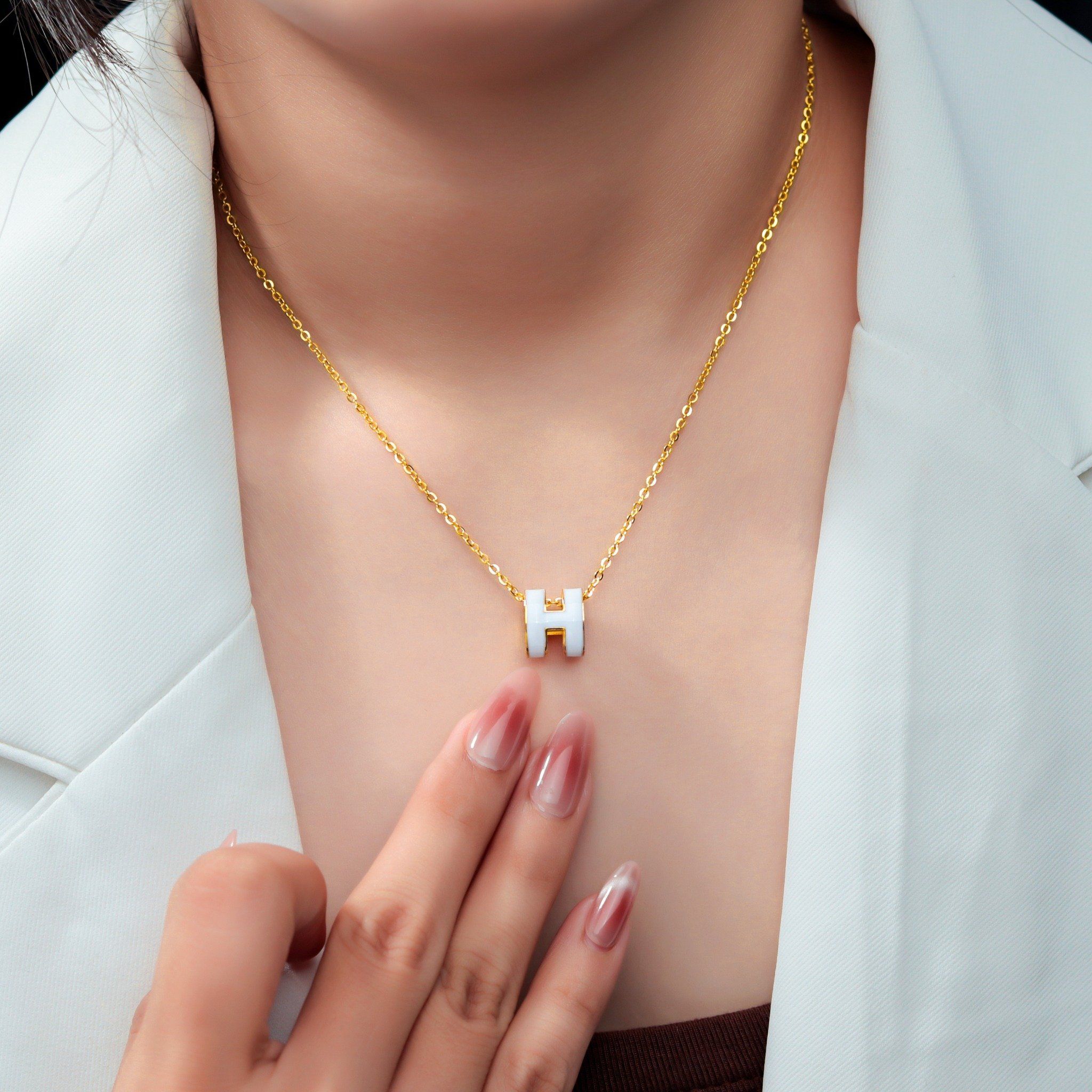 Dây Chuyền Titan SST Chữ H màu trắng thanh lịch Không Đen Gỉ VC463
