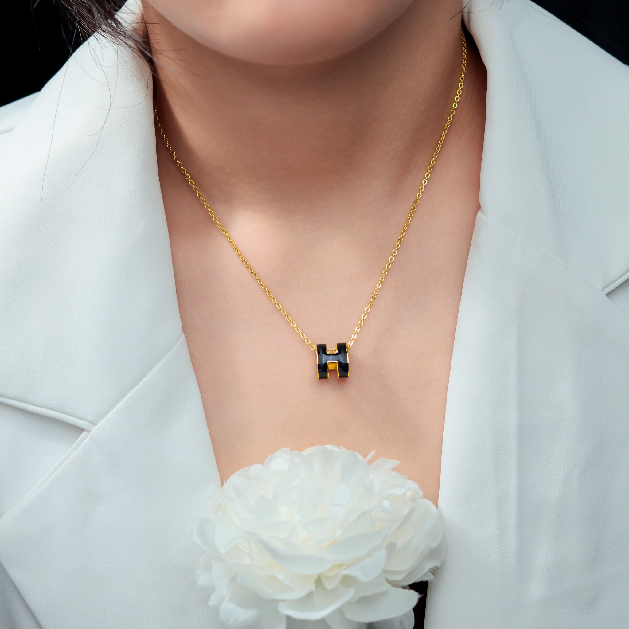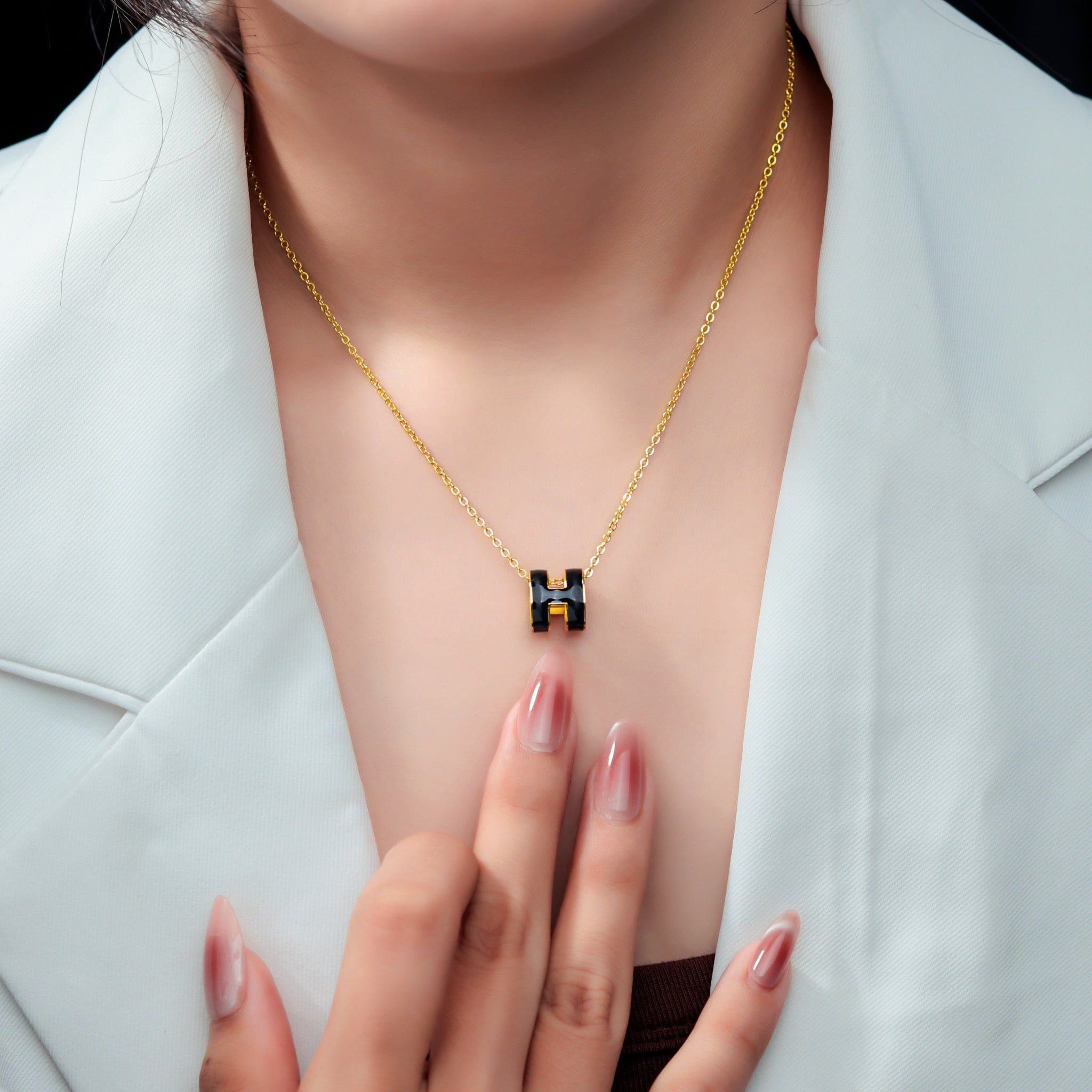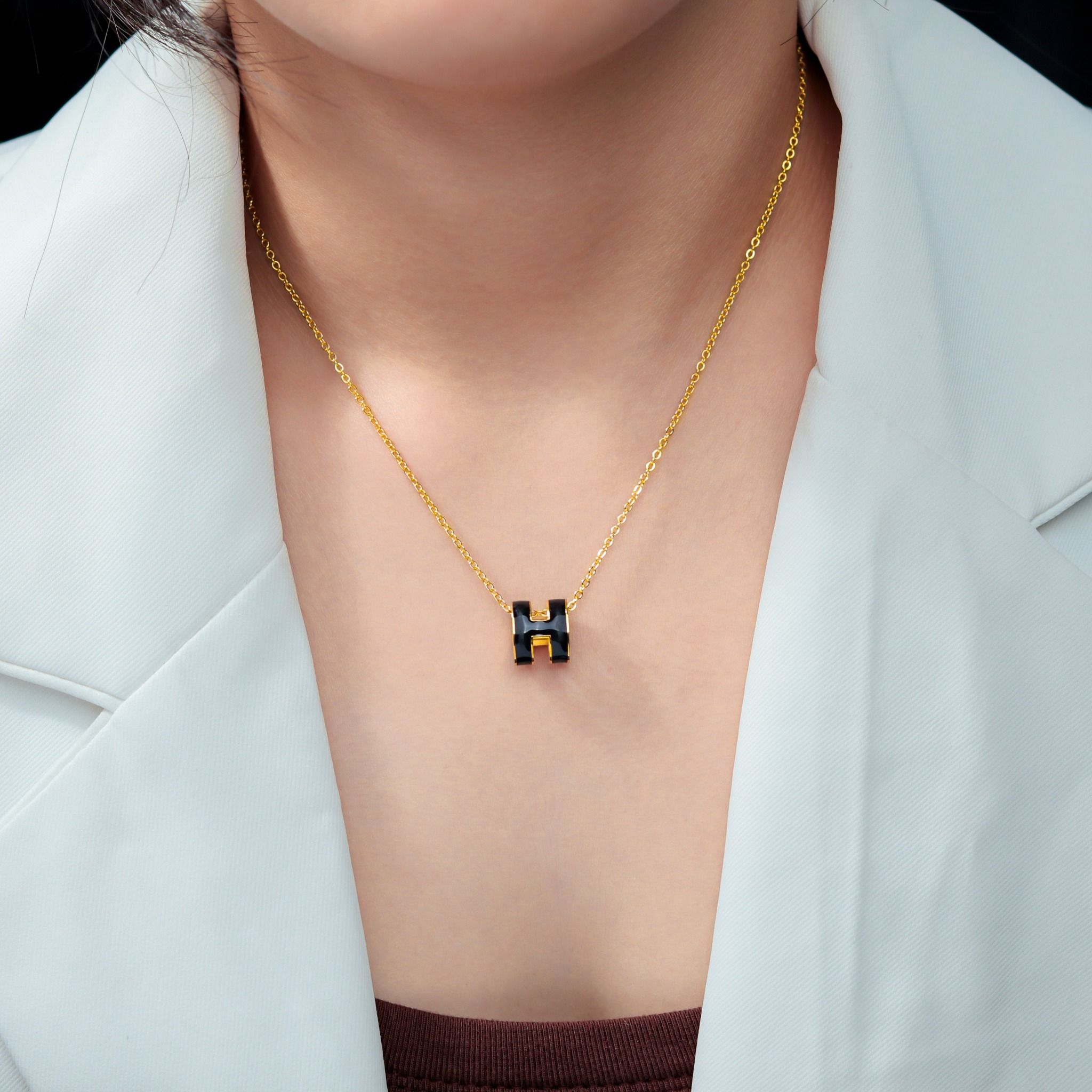 Dây Chuyền Titan SST Chữ H màu đen thanh lịch Không Đen Gỉ VC463
