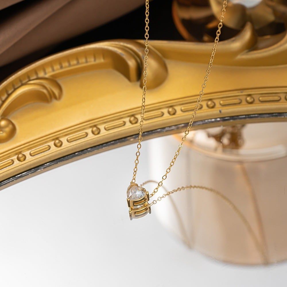 Dây Chuyền Mảnh Nữ Mặt Đá Trái Tim – Titan Cao Cấp, Không Đen Gỉ | Mã: VC531