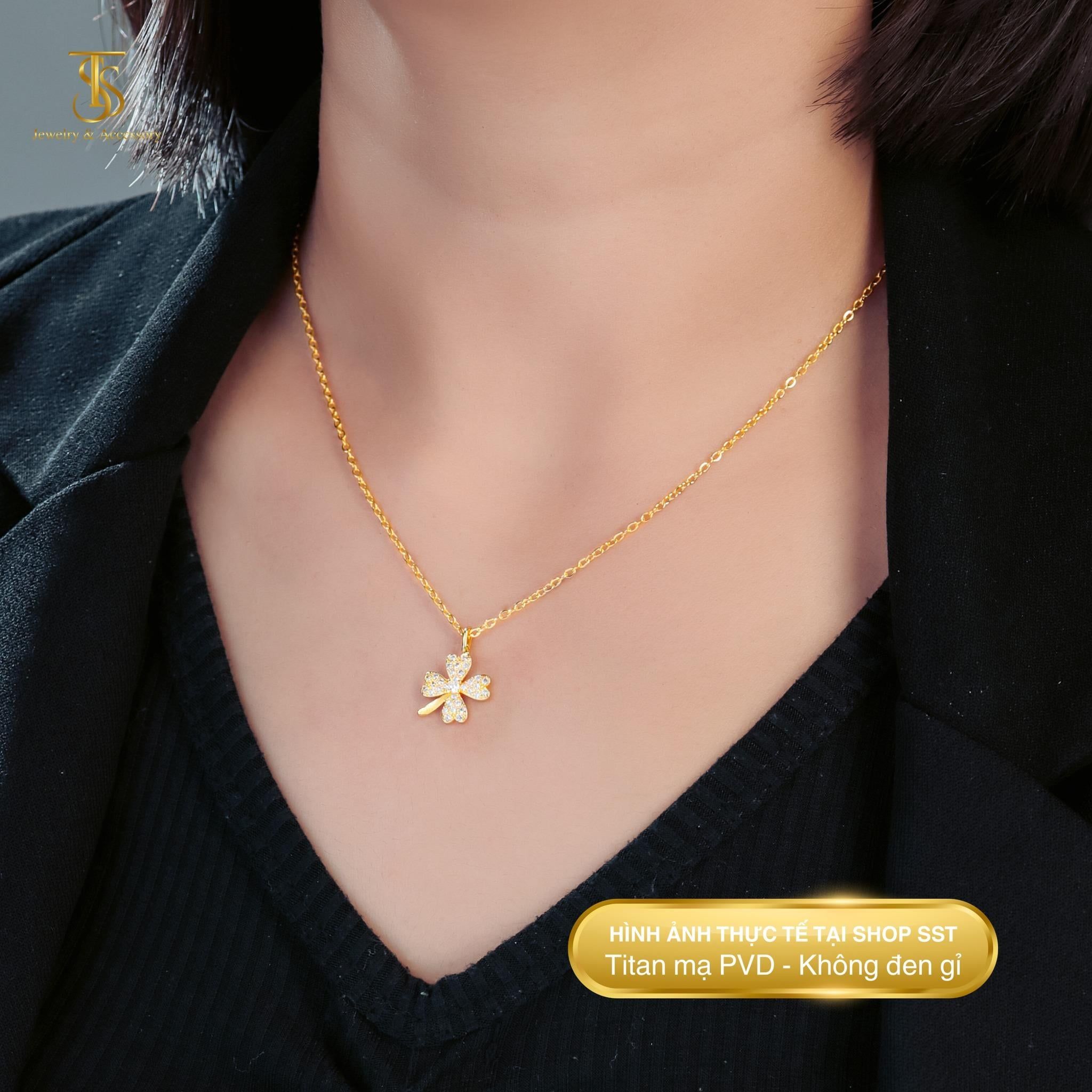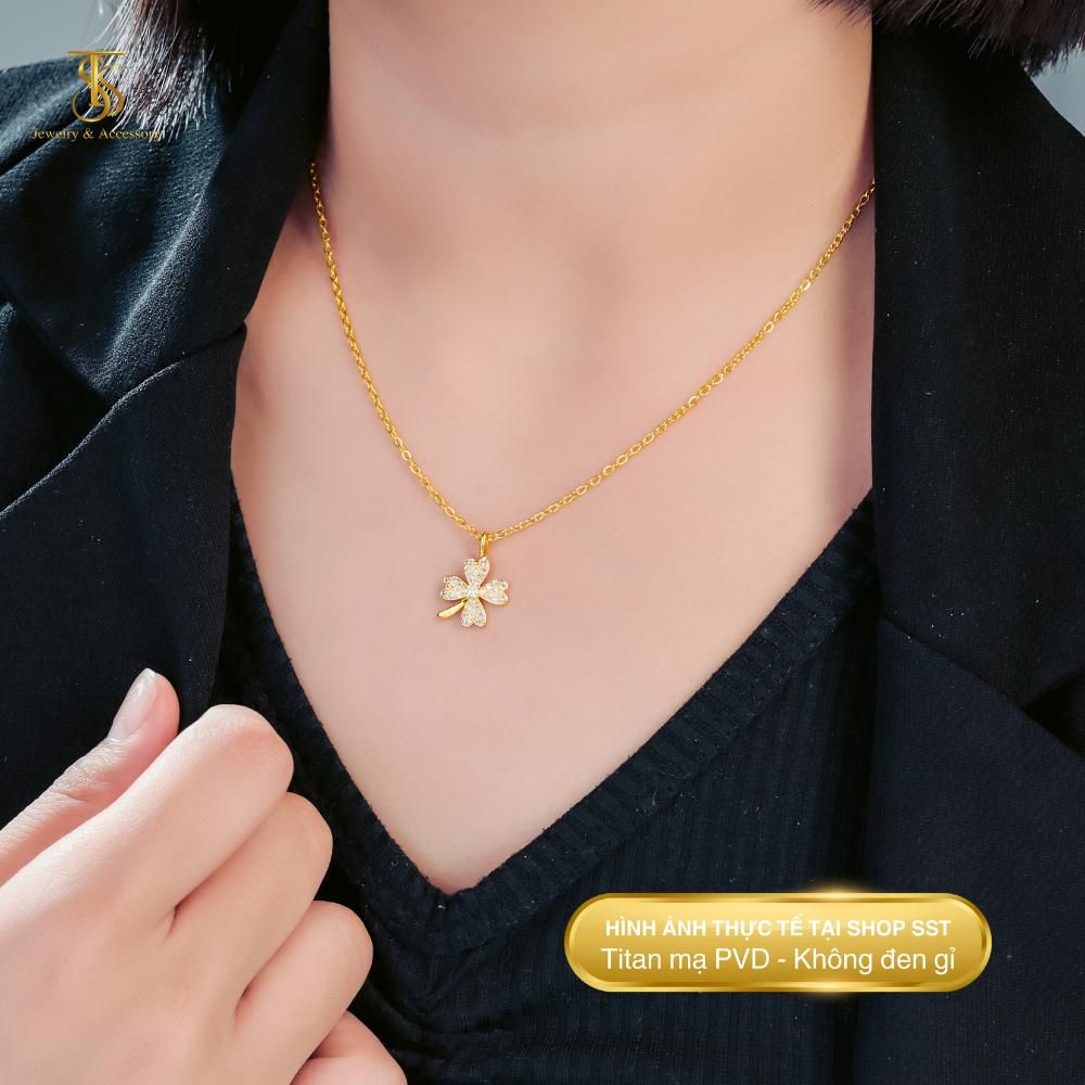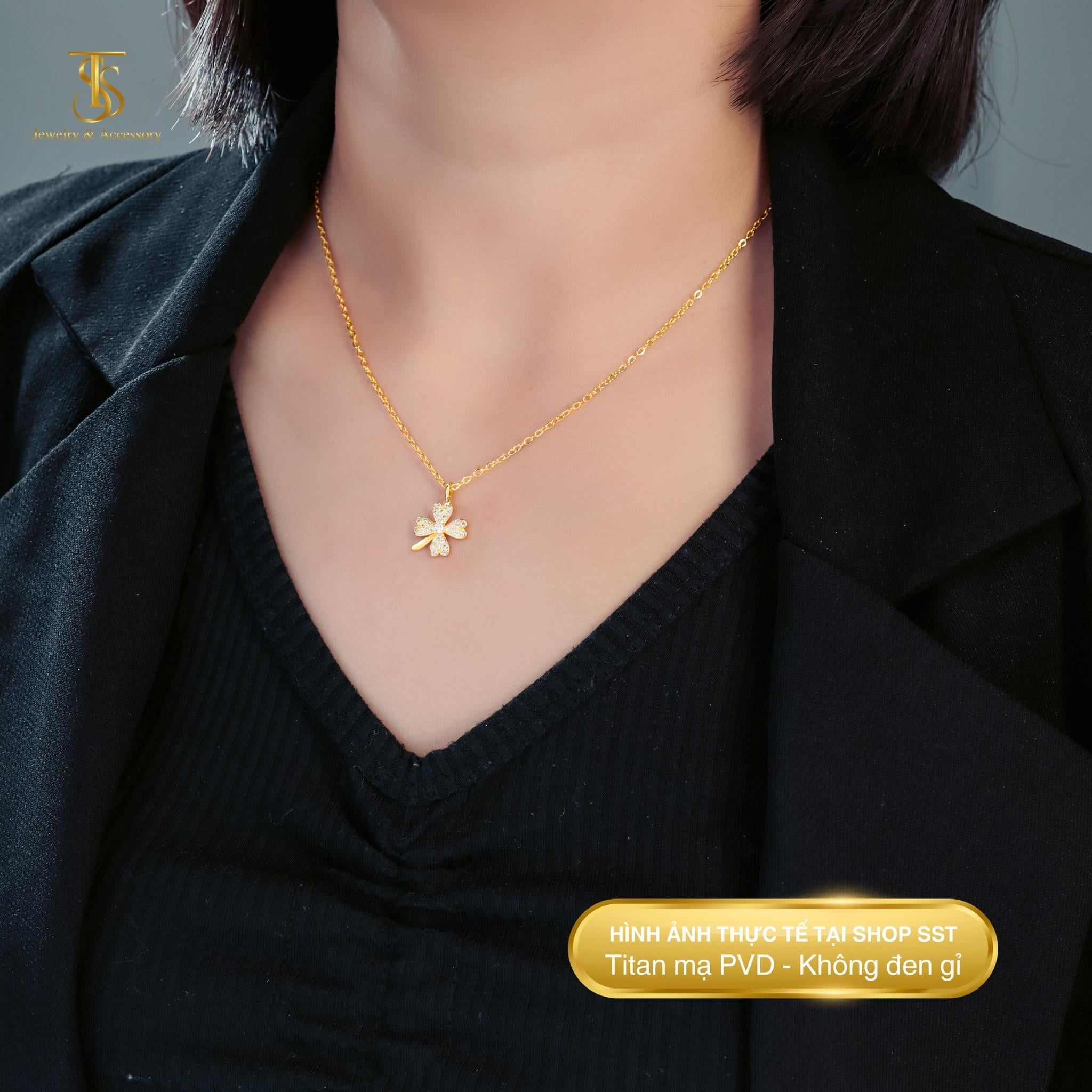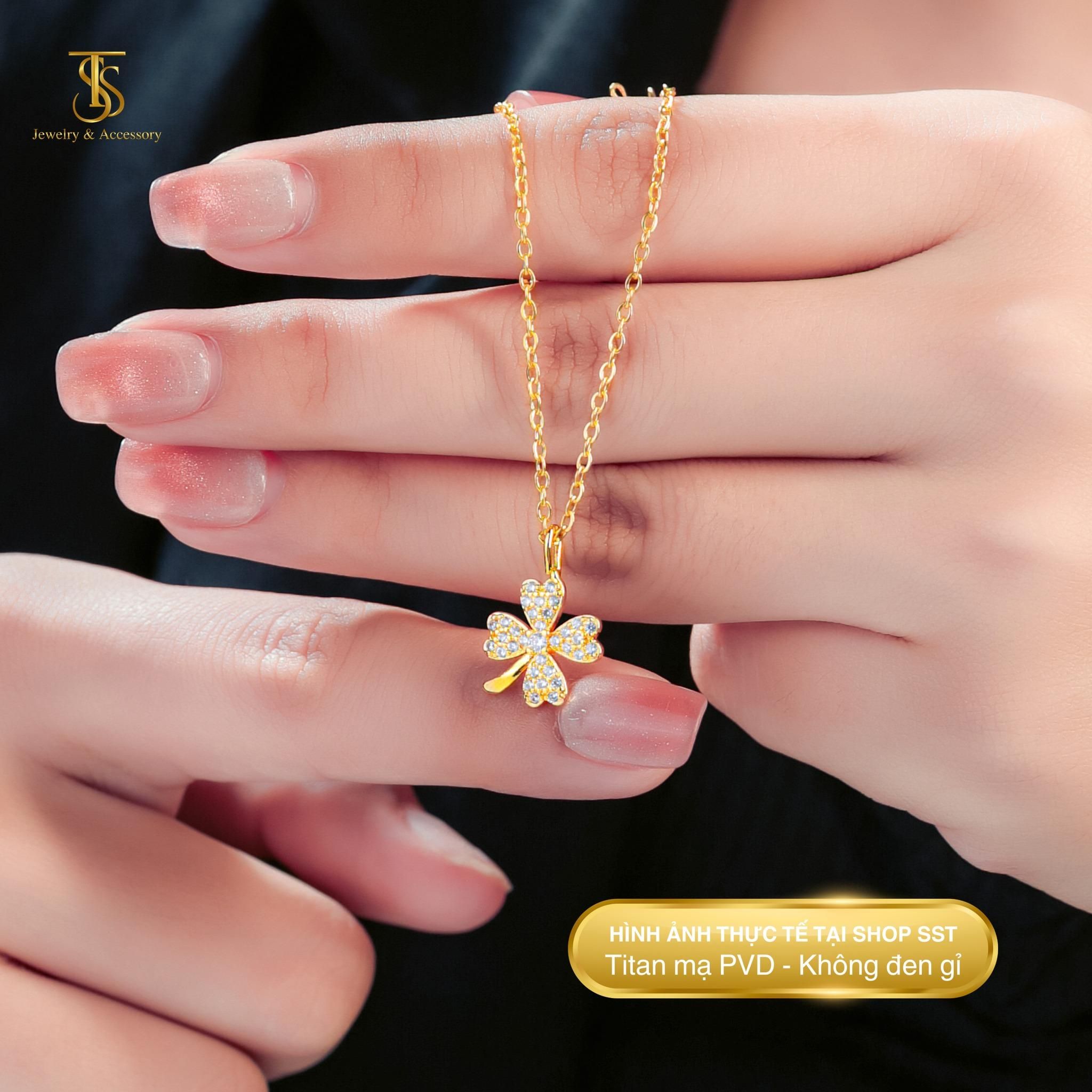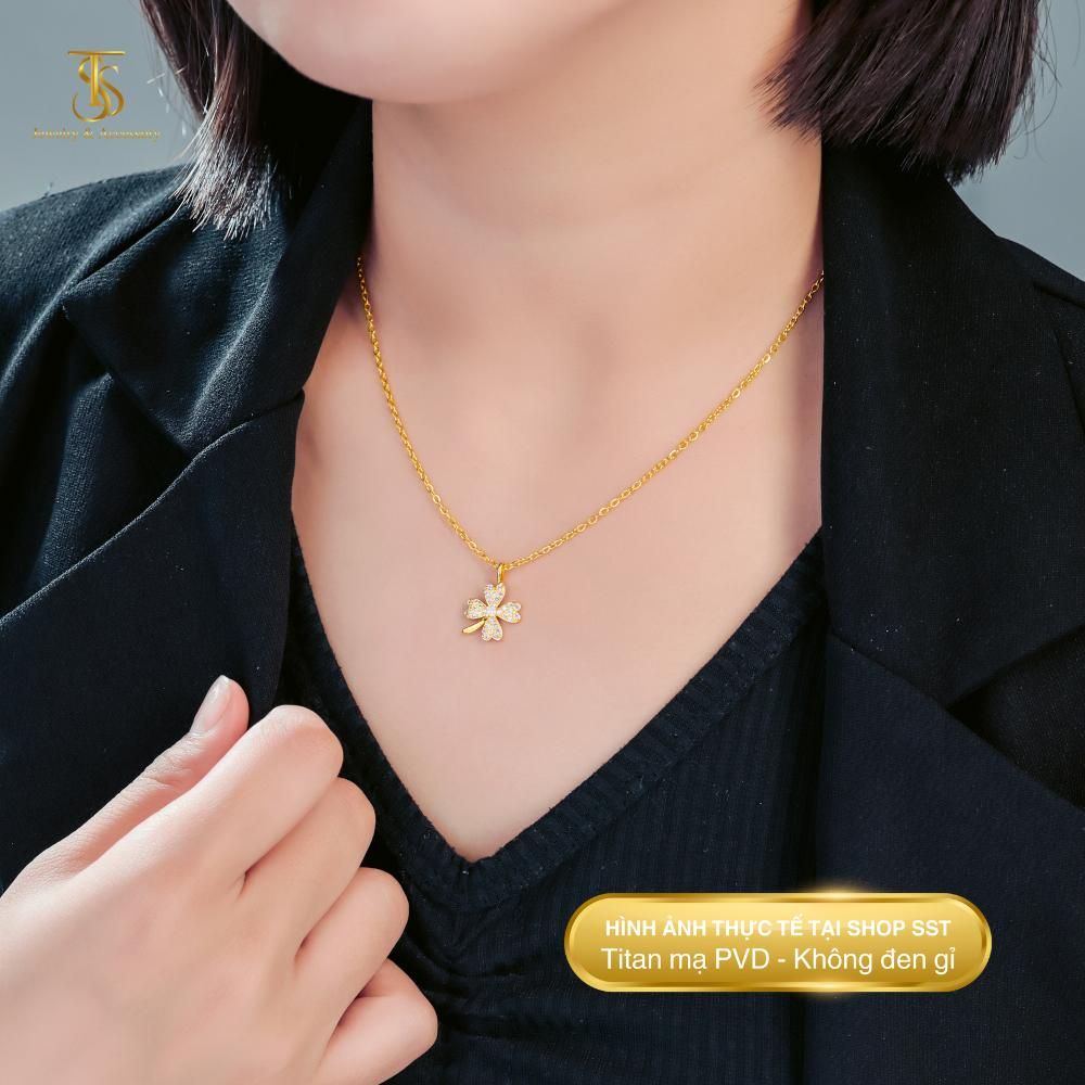 Dây chuyền nữ Titan SST Official Mặt cỏ 4 lá Đính Đá lấp lánh Không Đen Gỉ VC550