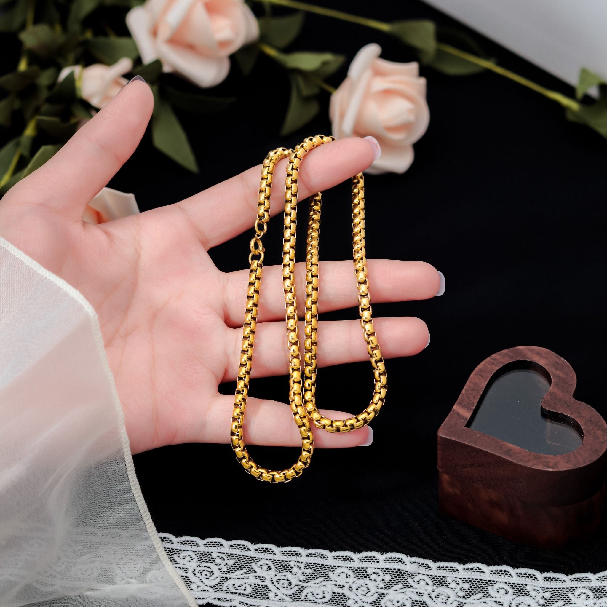 Dây chuyền Titan SST Bảng dây công cao cấp khóa tròn Không Đen Gỉ VC263