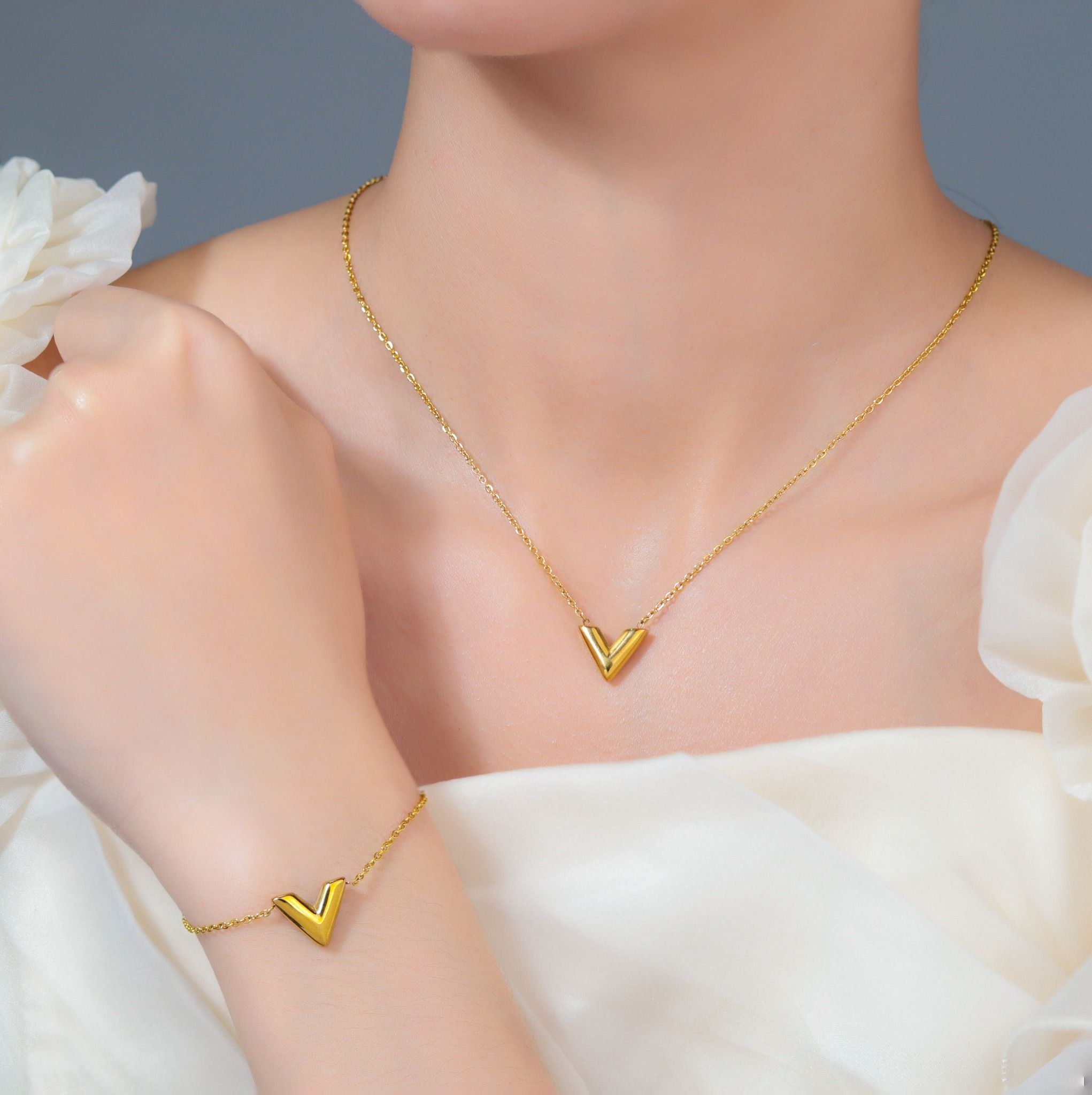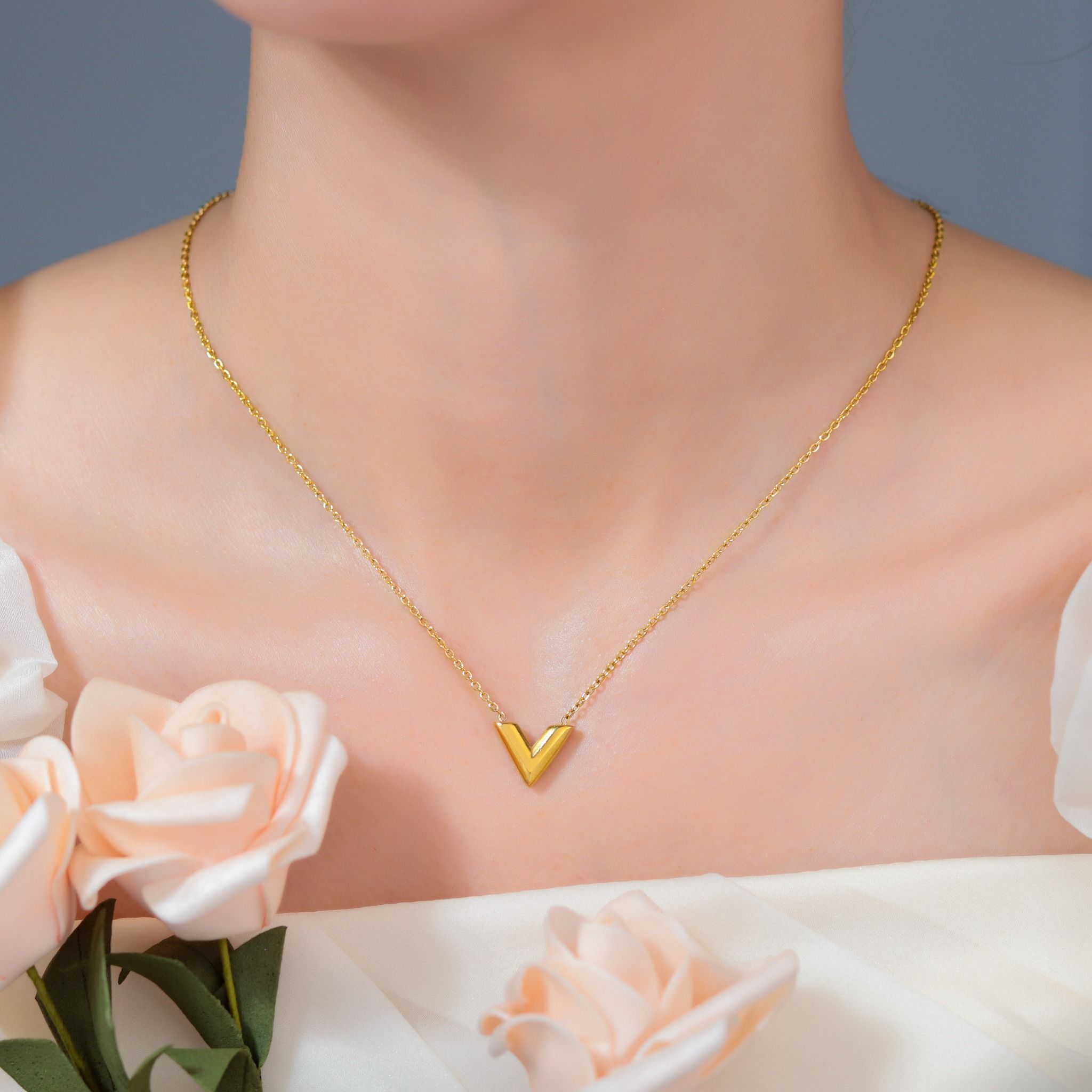 Dây chuyền Titan SST Official Store Mặt chữ V thanh lịch Không Đen Gỉ VC148