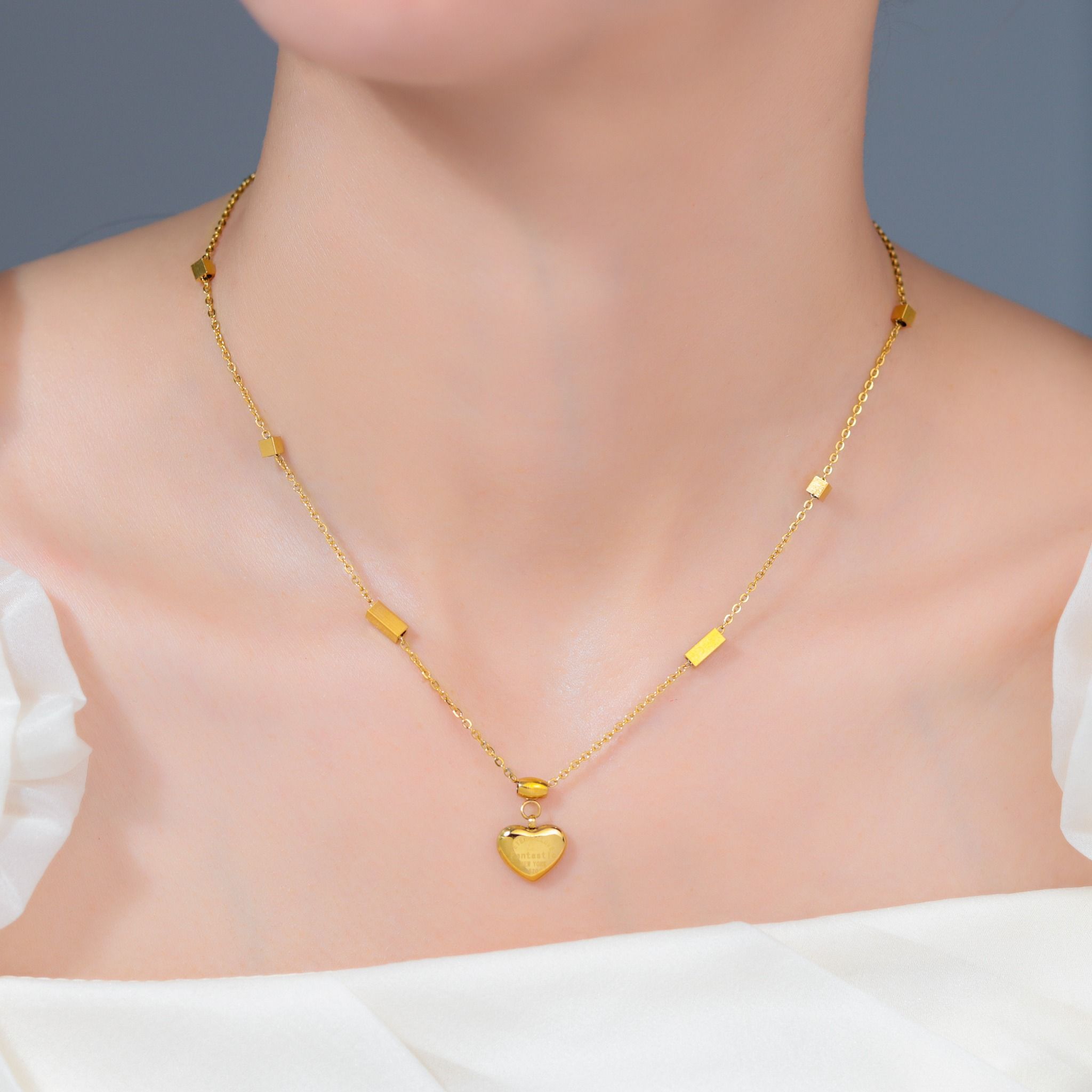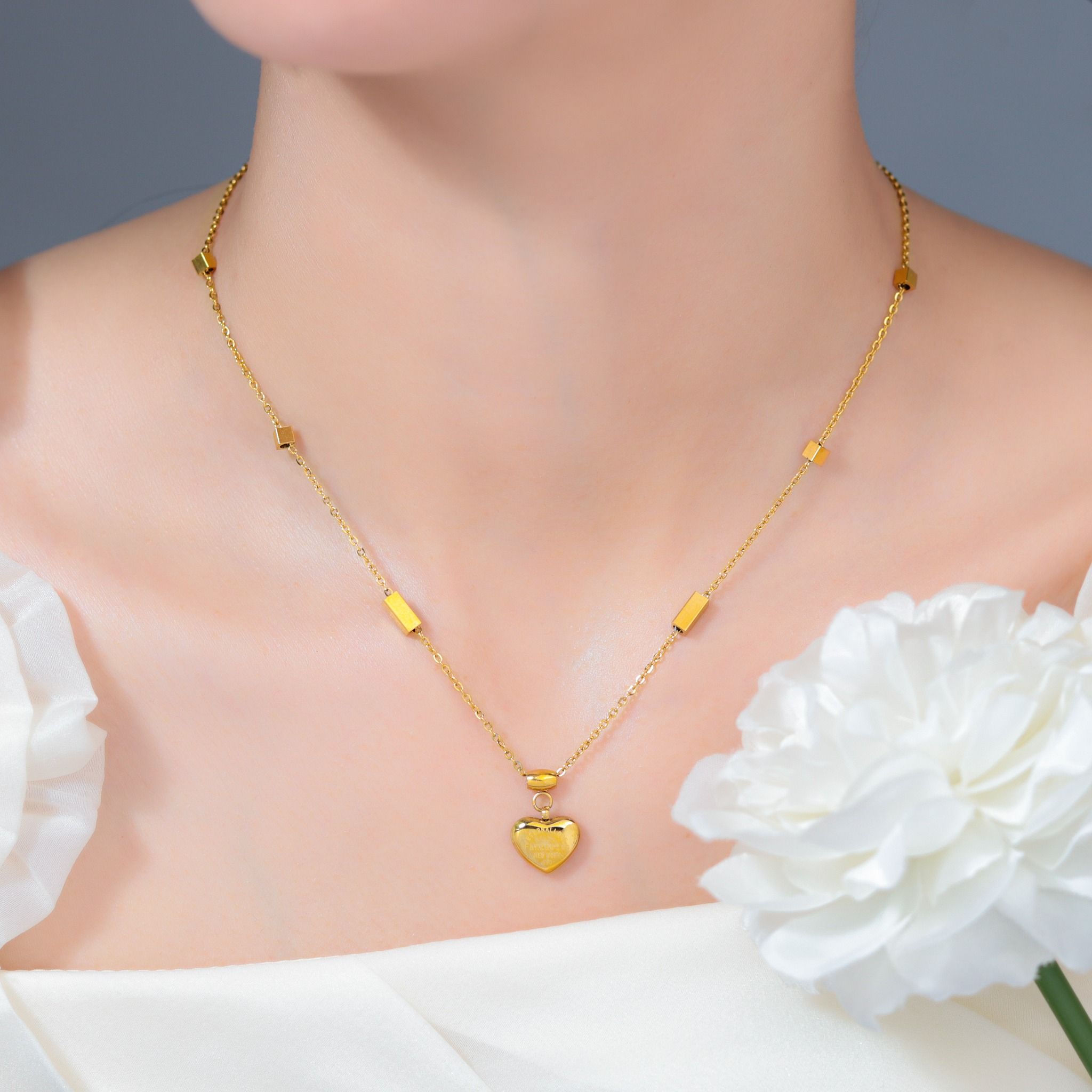 Dây chuyền Titan SST Trái tim khắc chữ Không Đen Gỉ VC252