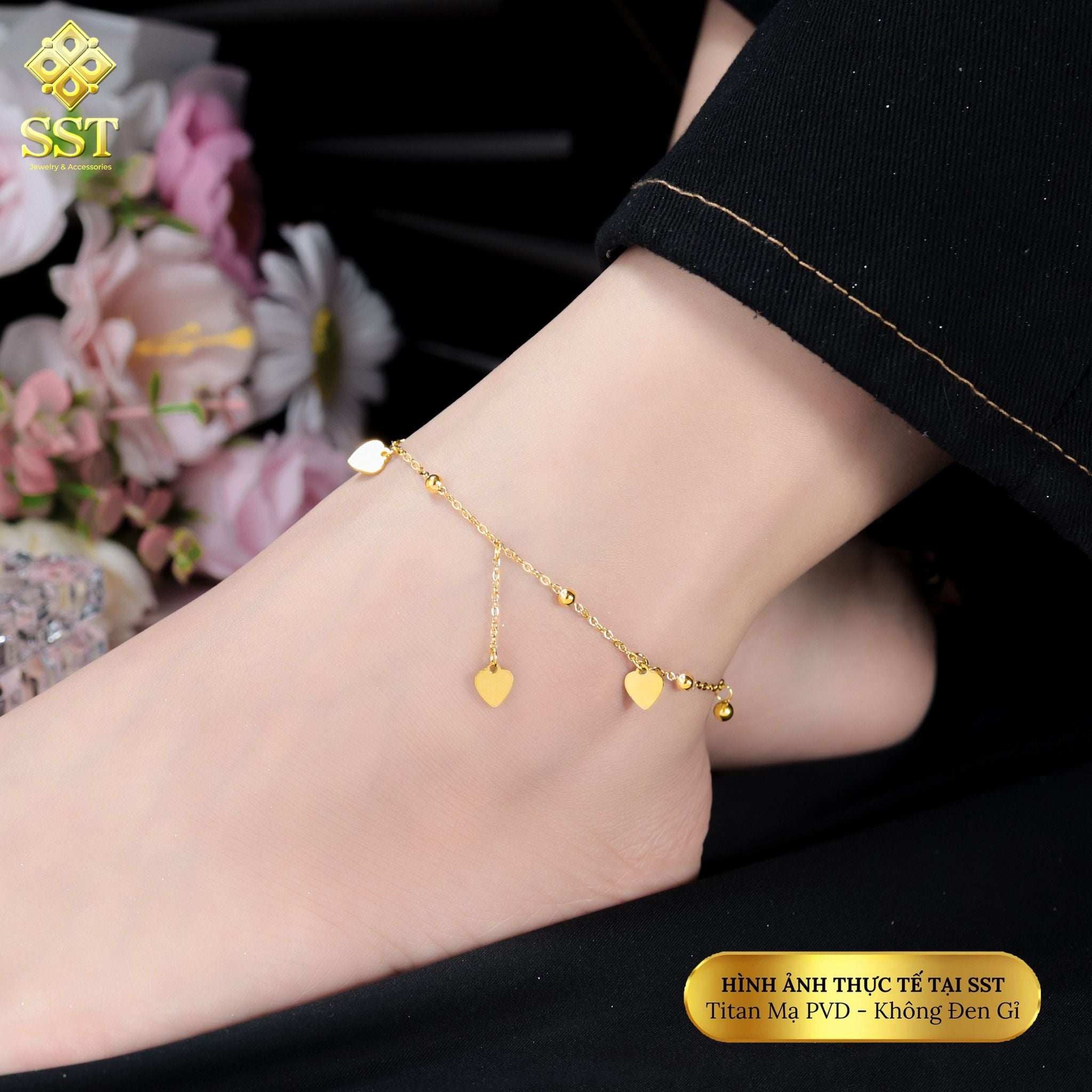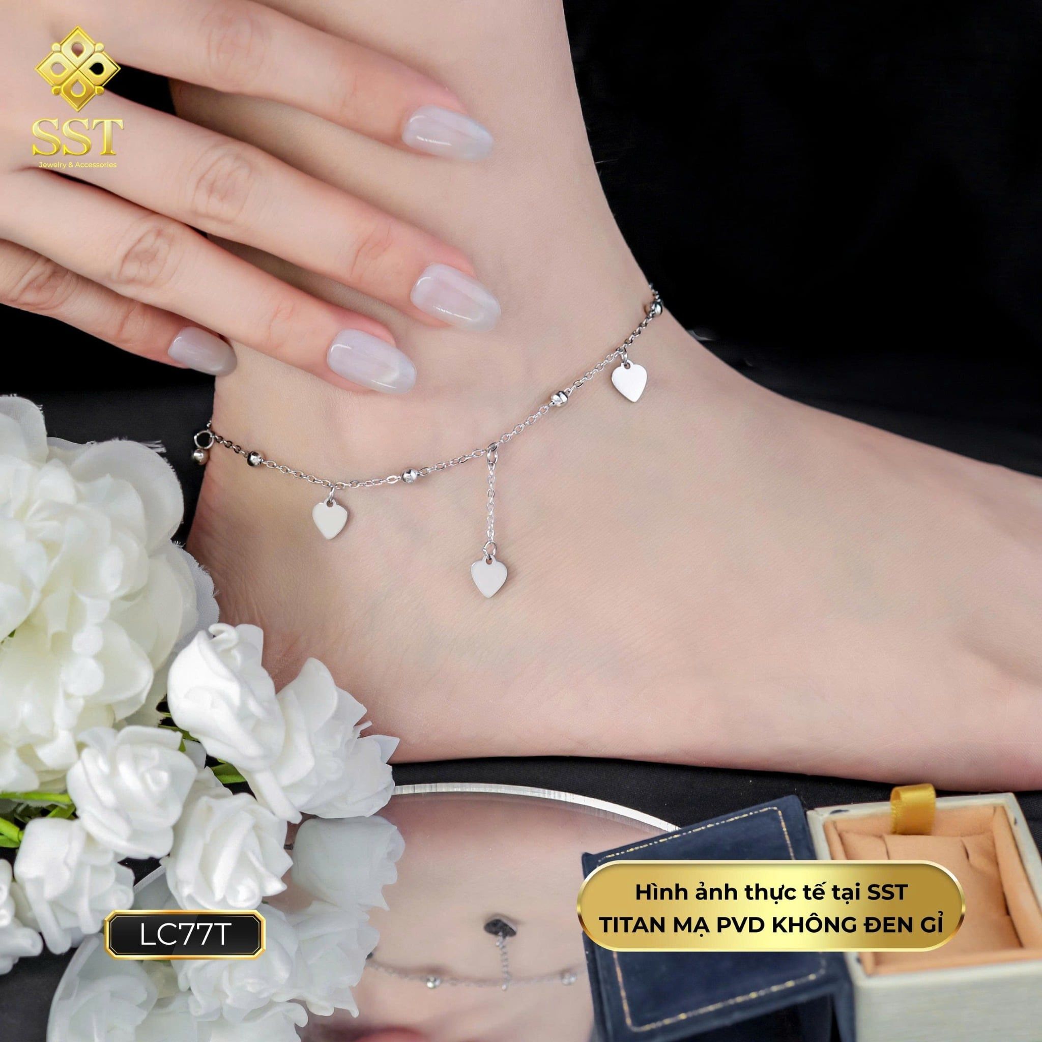 Lắc chân nữ Titan SST Official Store Kiểu Dây Bi Tim nữ tính Không Den Gỉ LC77