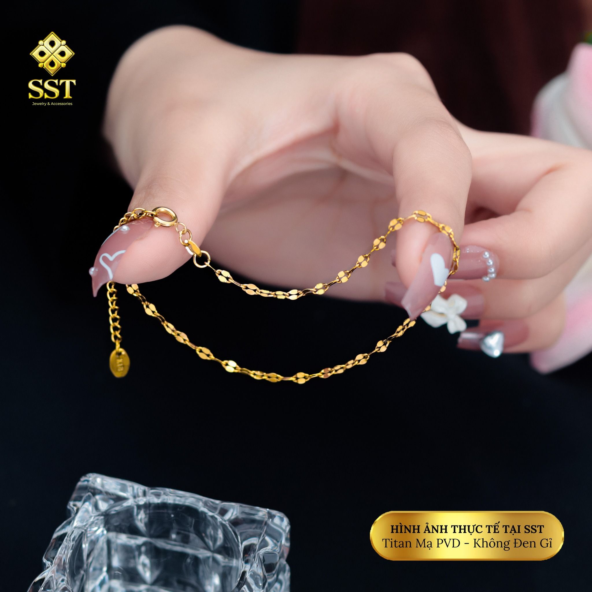 Lắc chân Titan SST Official Store Kiểu basic dây lá me lấp lấnh Không Đen Gỉ LC12