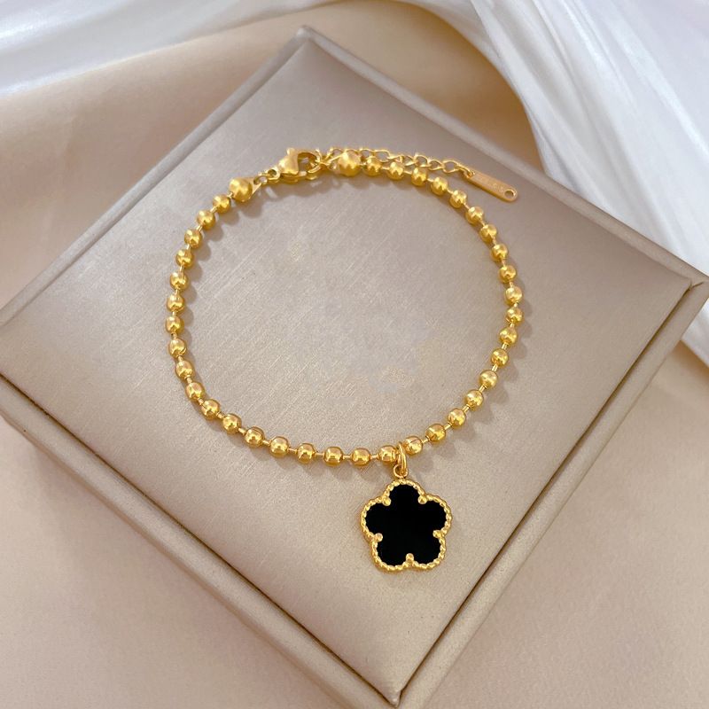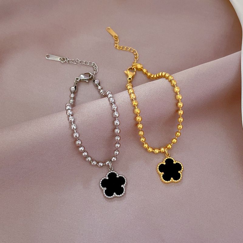 Lắc tay nữ Titan SST Dây bi tròn charm hoa 5 cánh đen Không Đen Gỉ LT244
