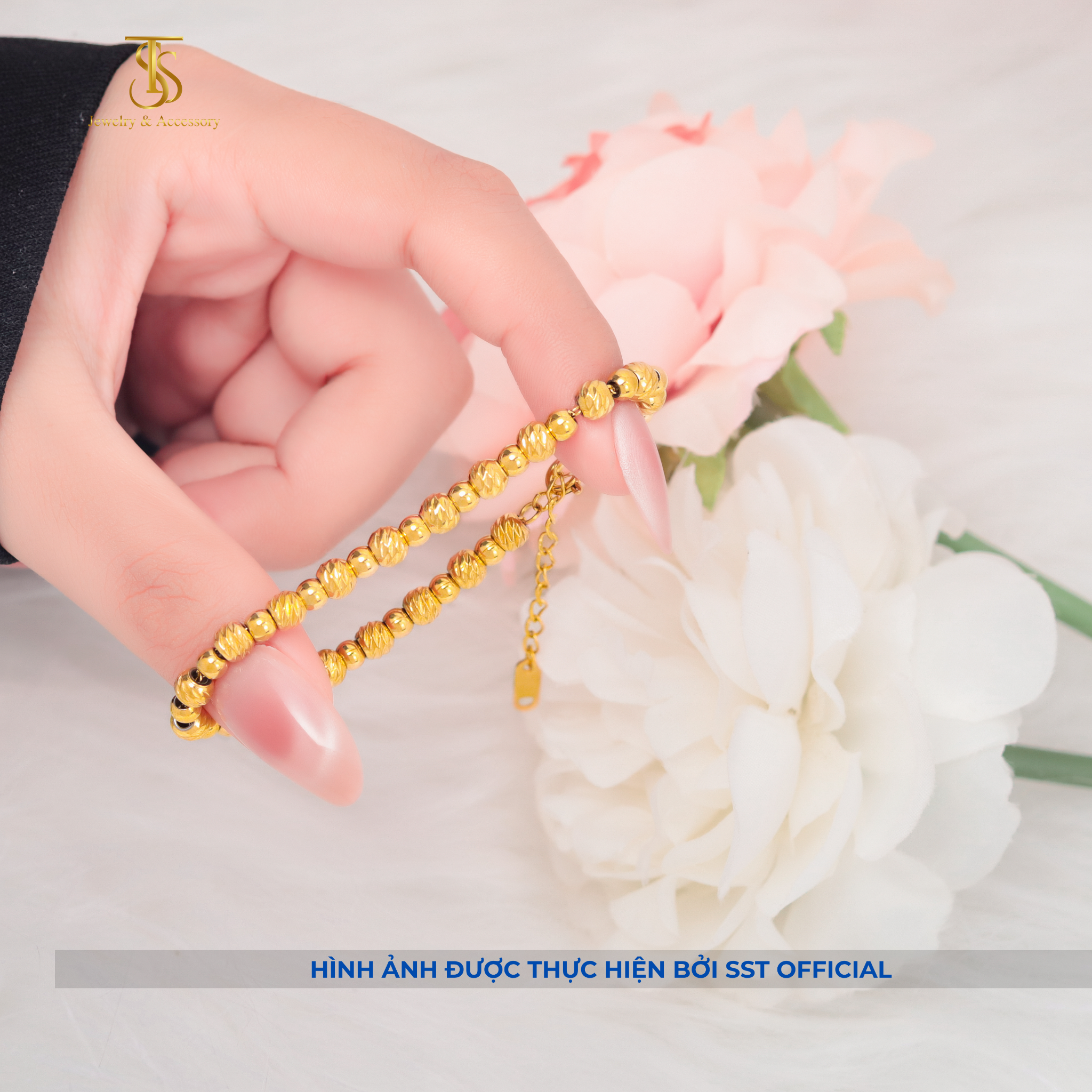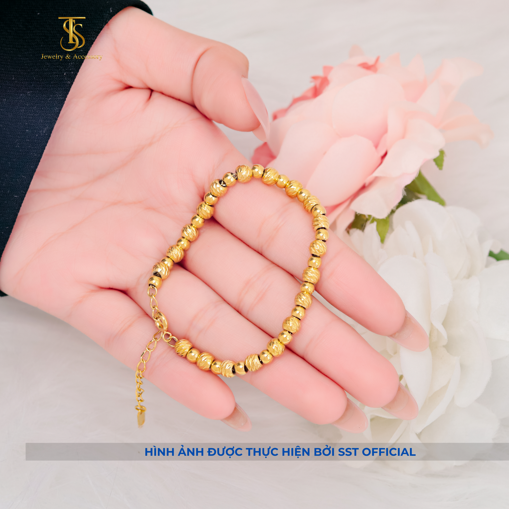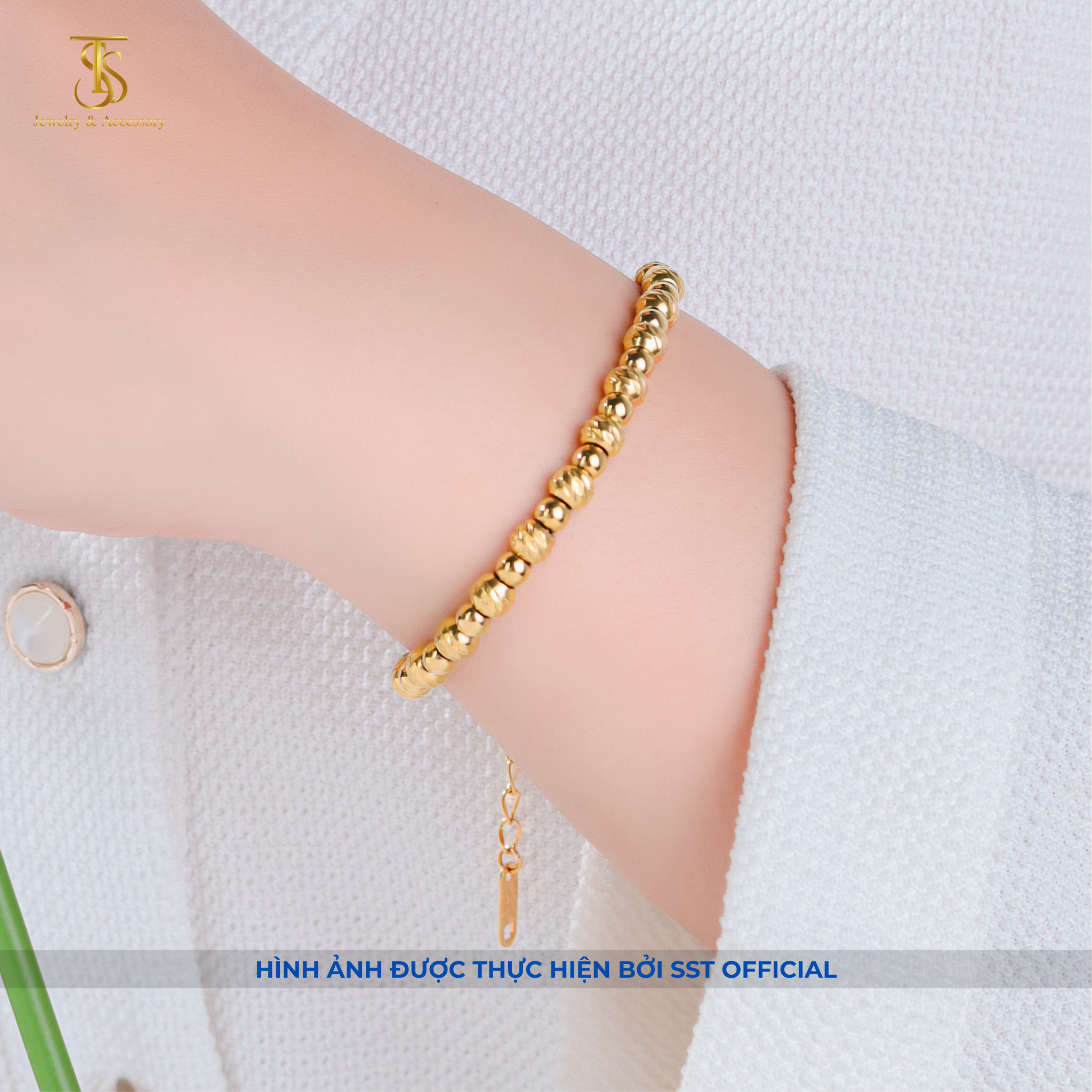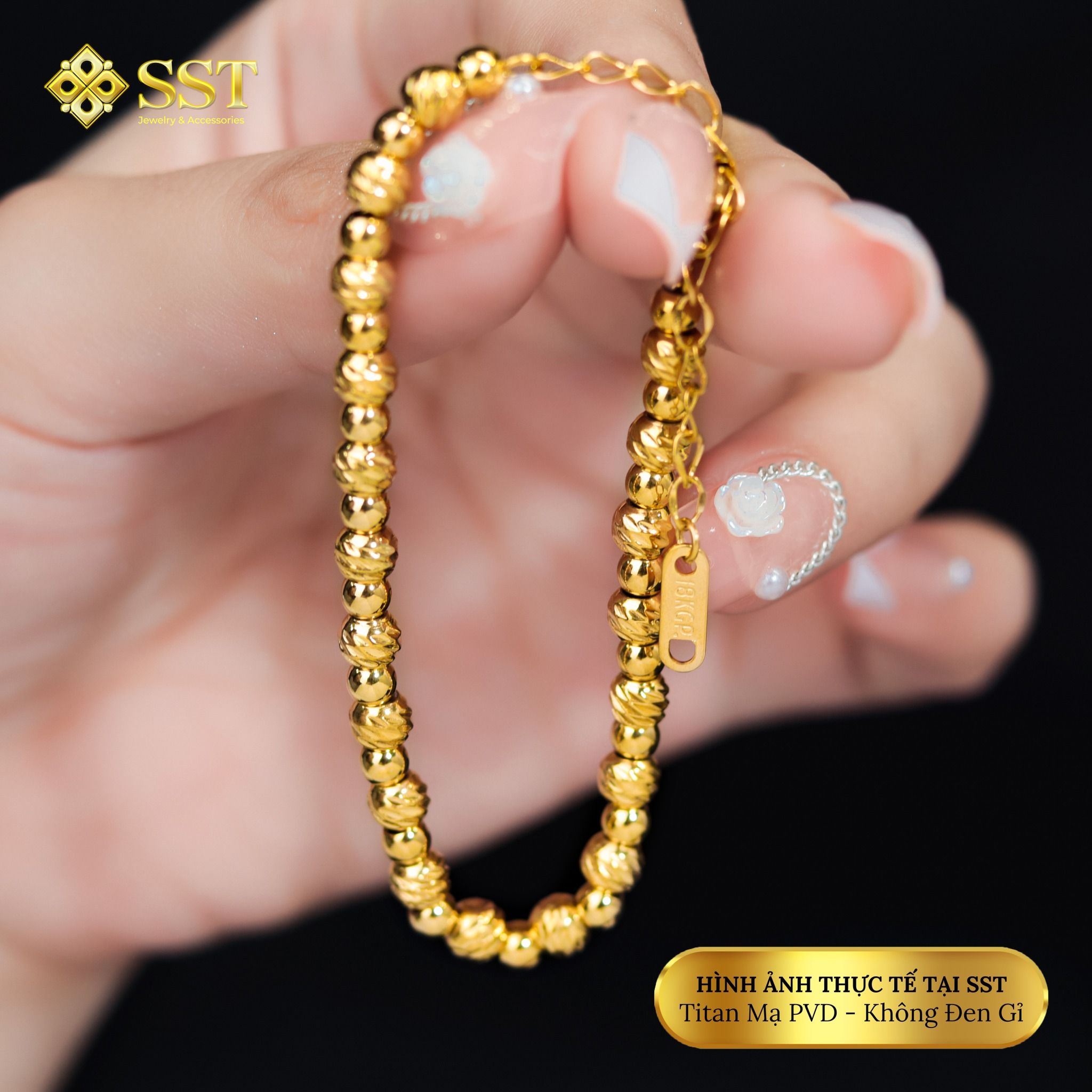 Lắc tay nữ Titan SST bi chạm khía sẵn khóa tròn sang trọng Không Đen Gỉ LT250