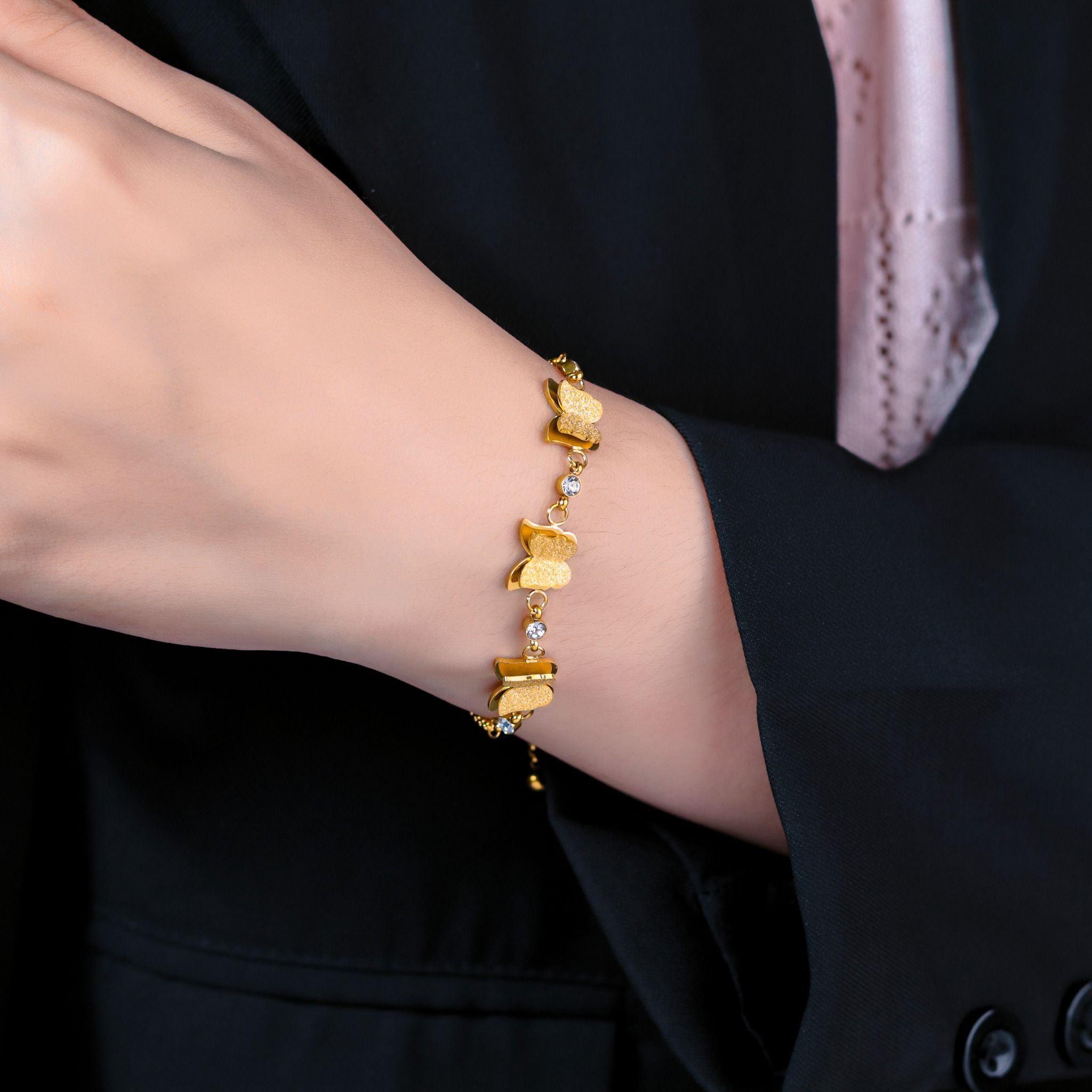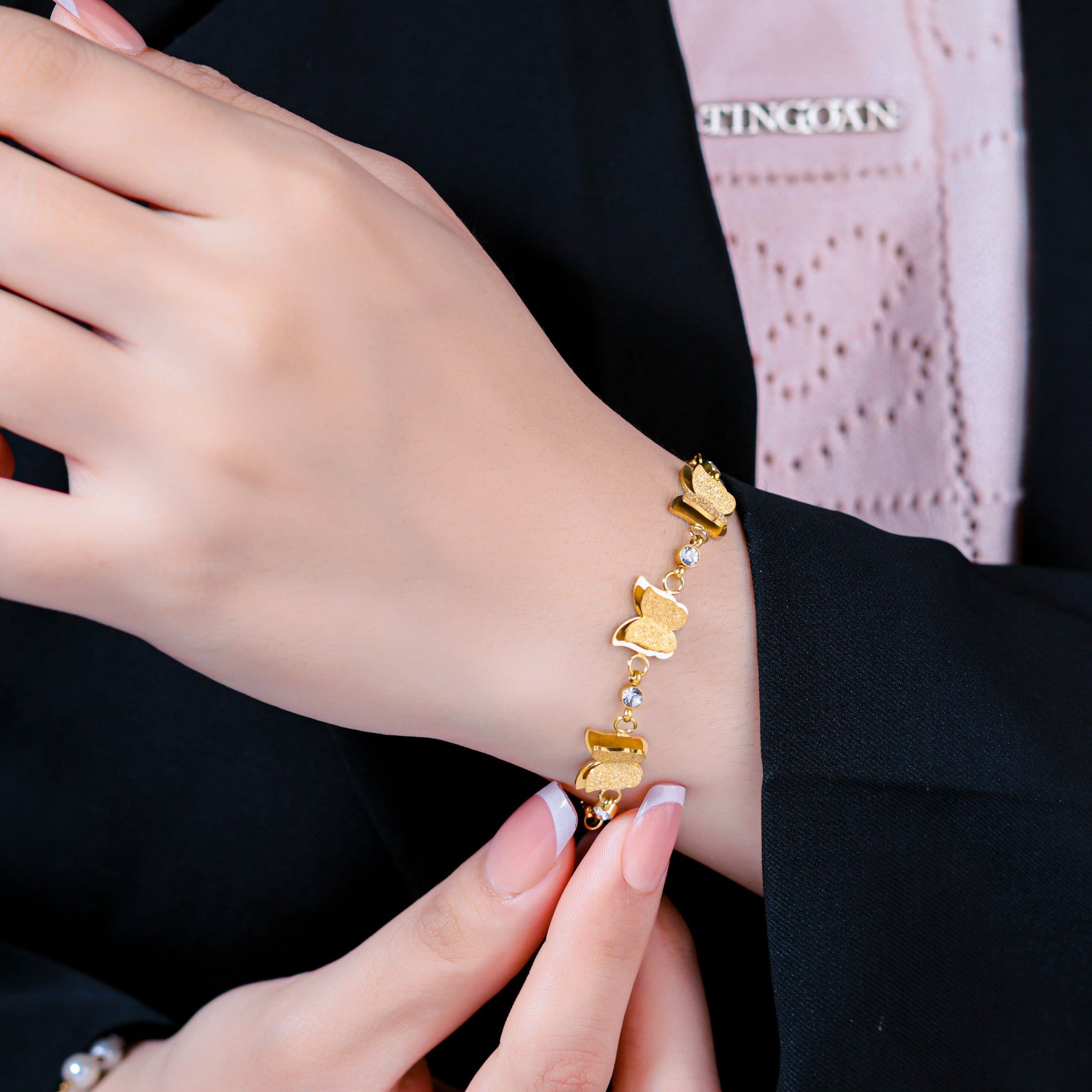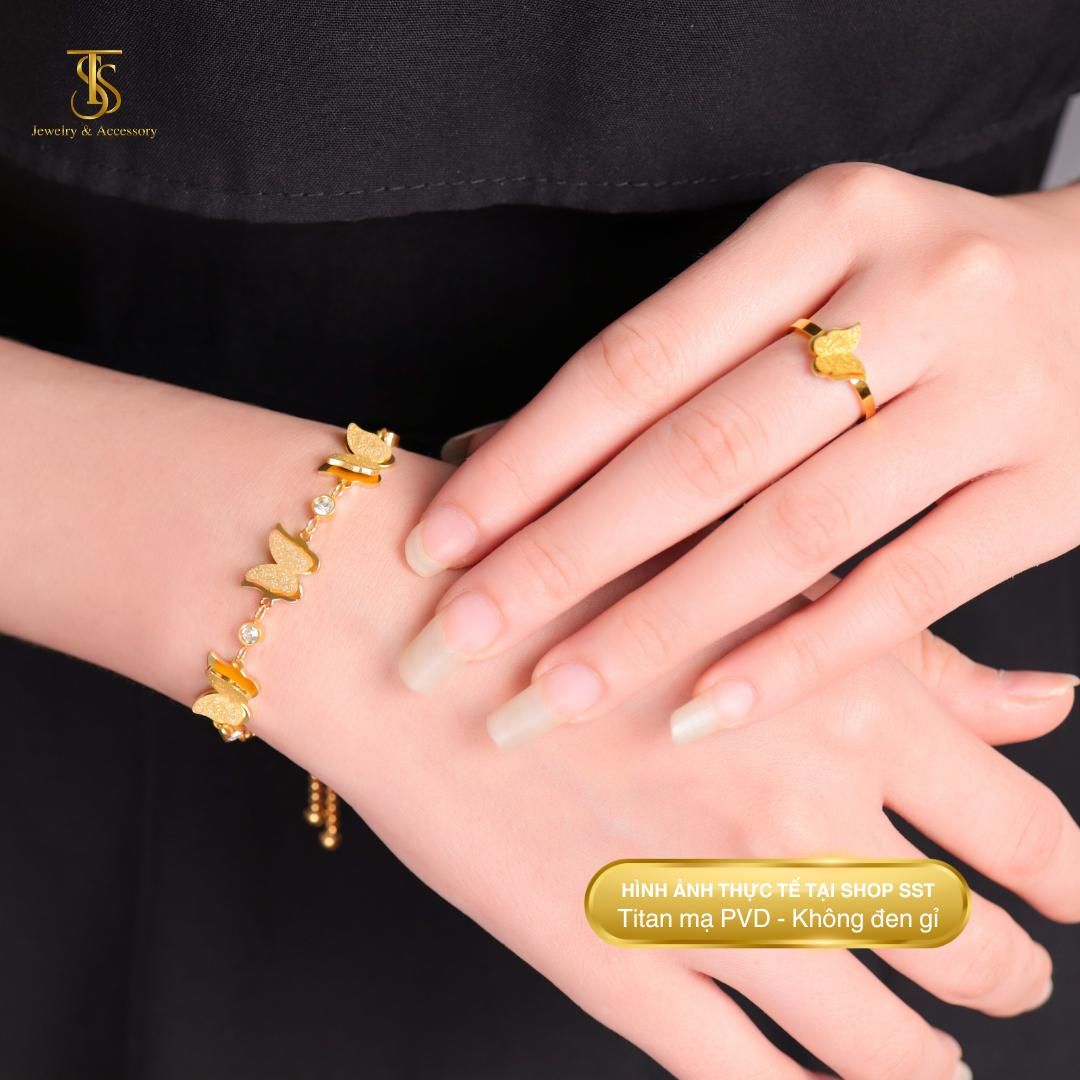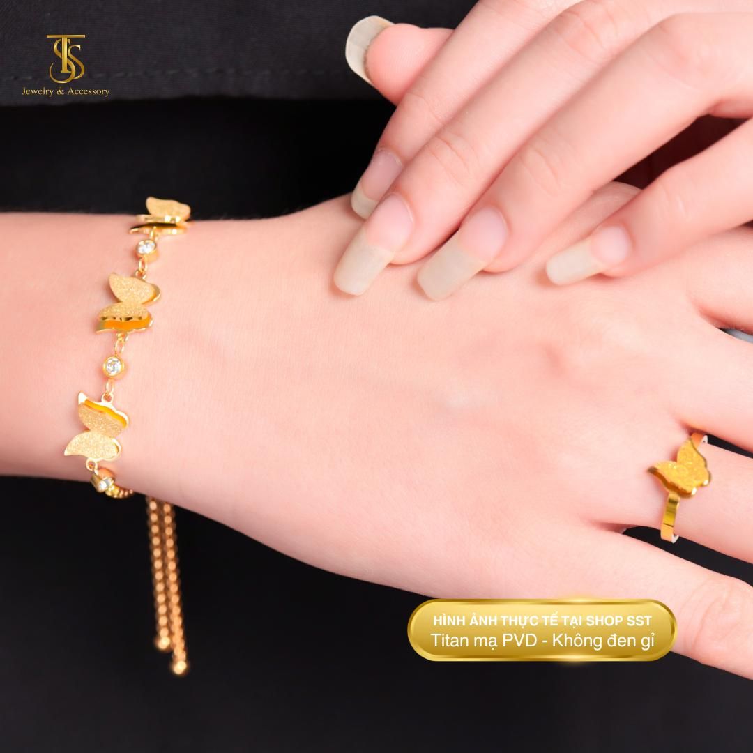 Lắc tay nữ Titan SST Official Store Mặt hồ điệp đính đá dây rút năng động Không Đen Gỉ LT184