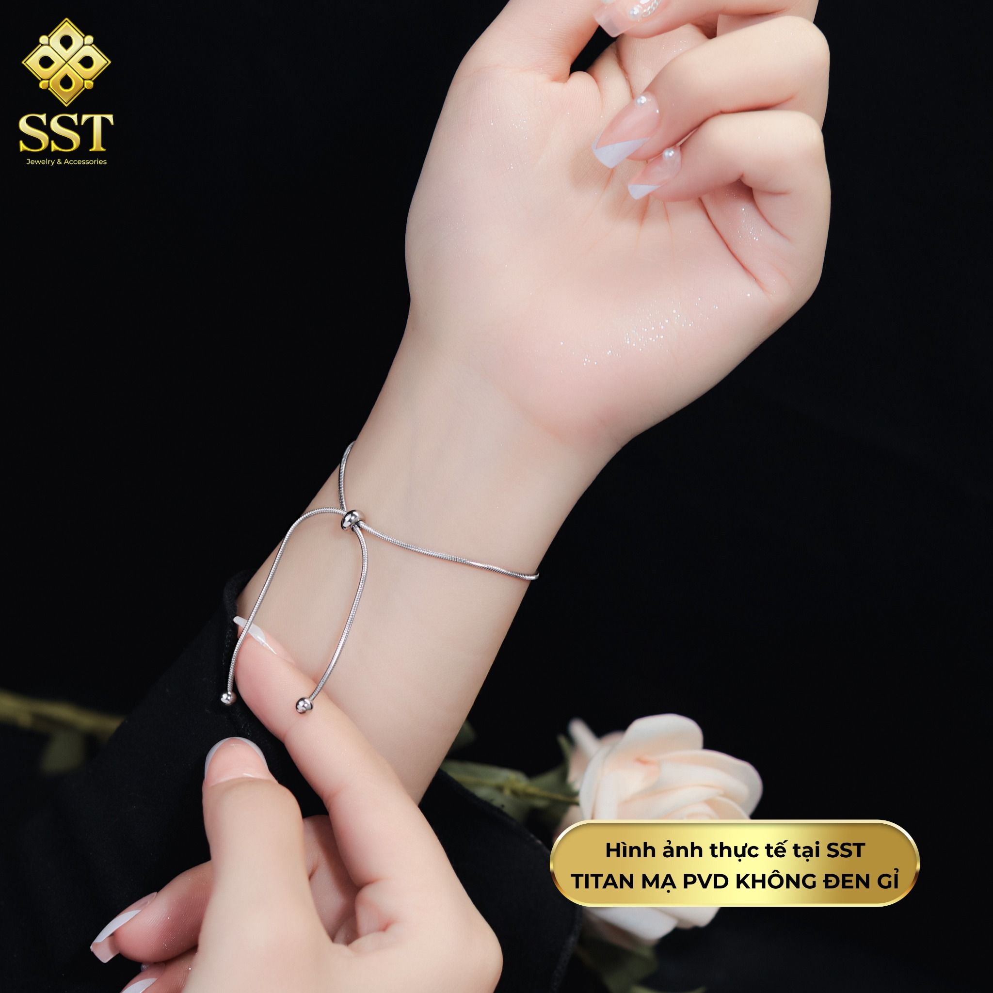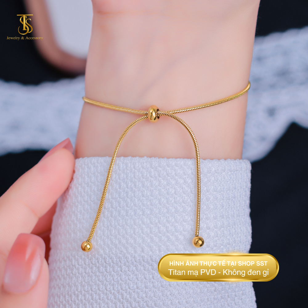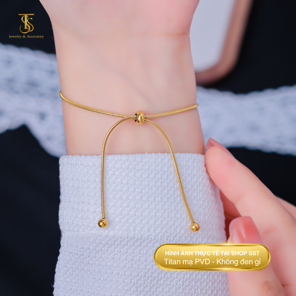 Lắc tay Unisex Titan SST Official Dây rút dây mì thanh lịch sang trọng Không Đen Gỉ LT71