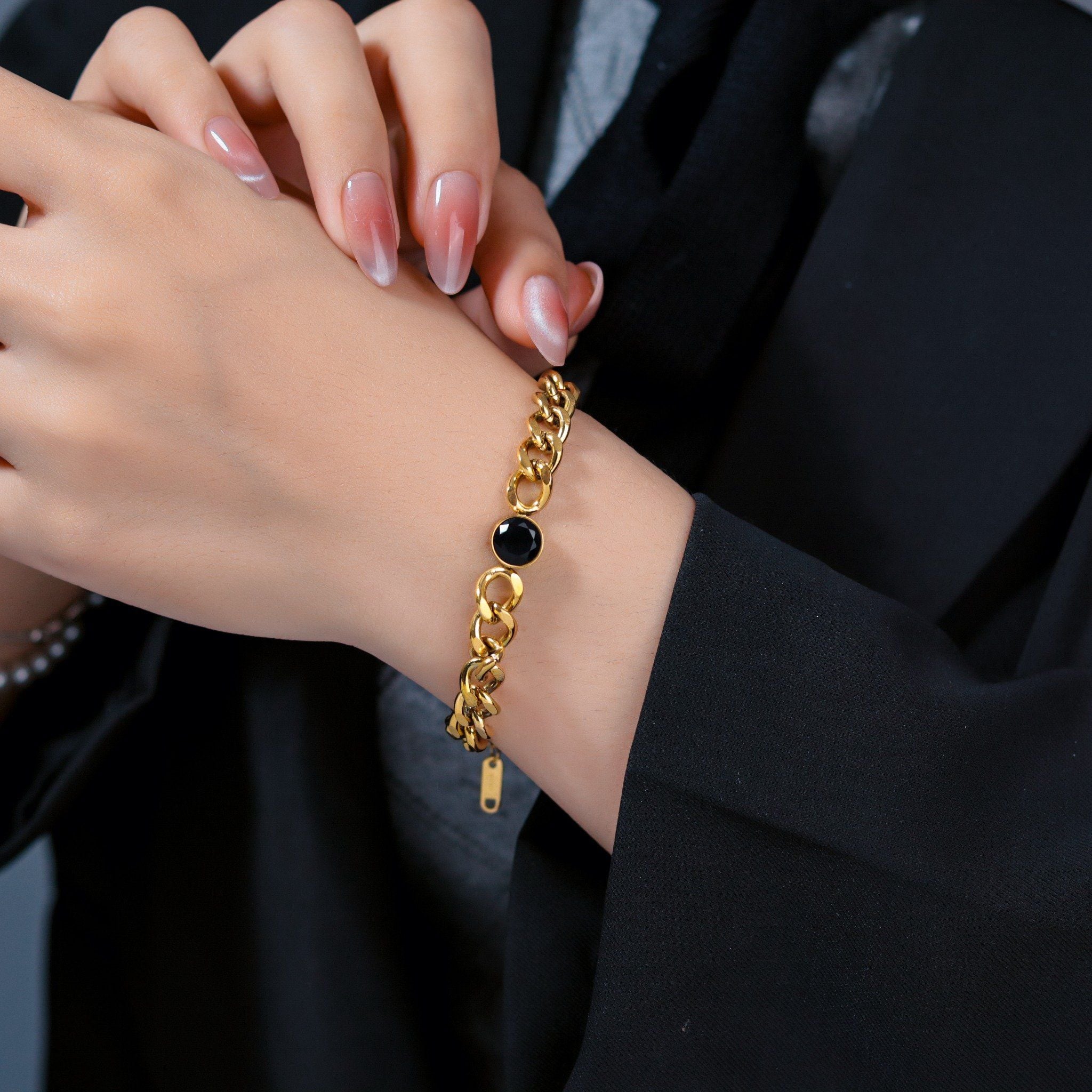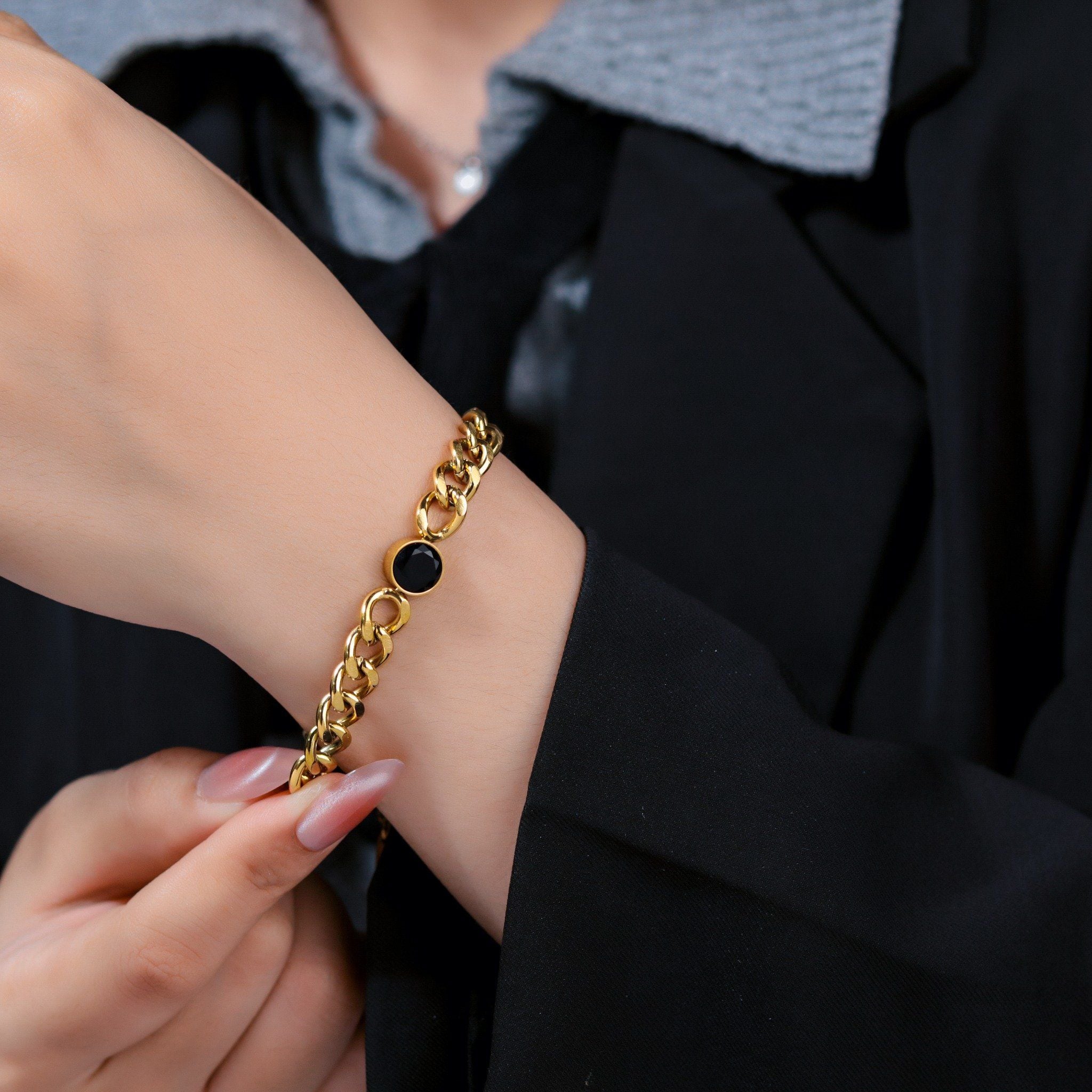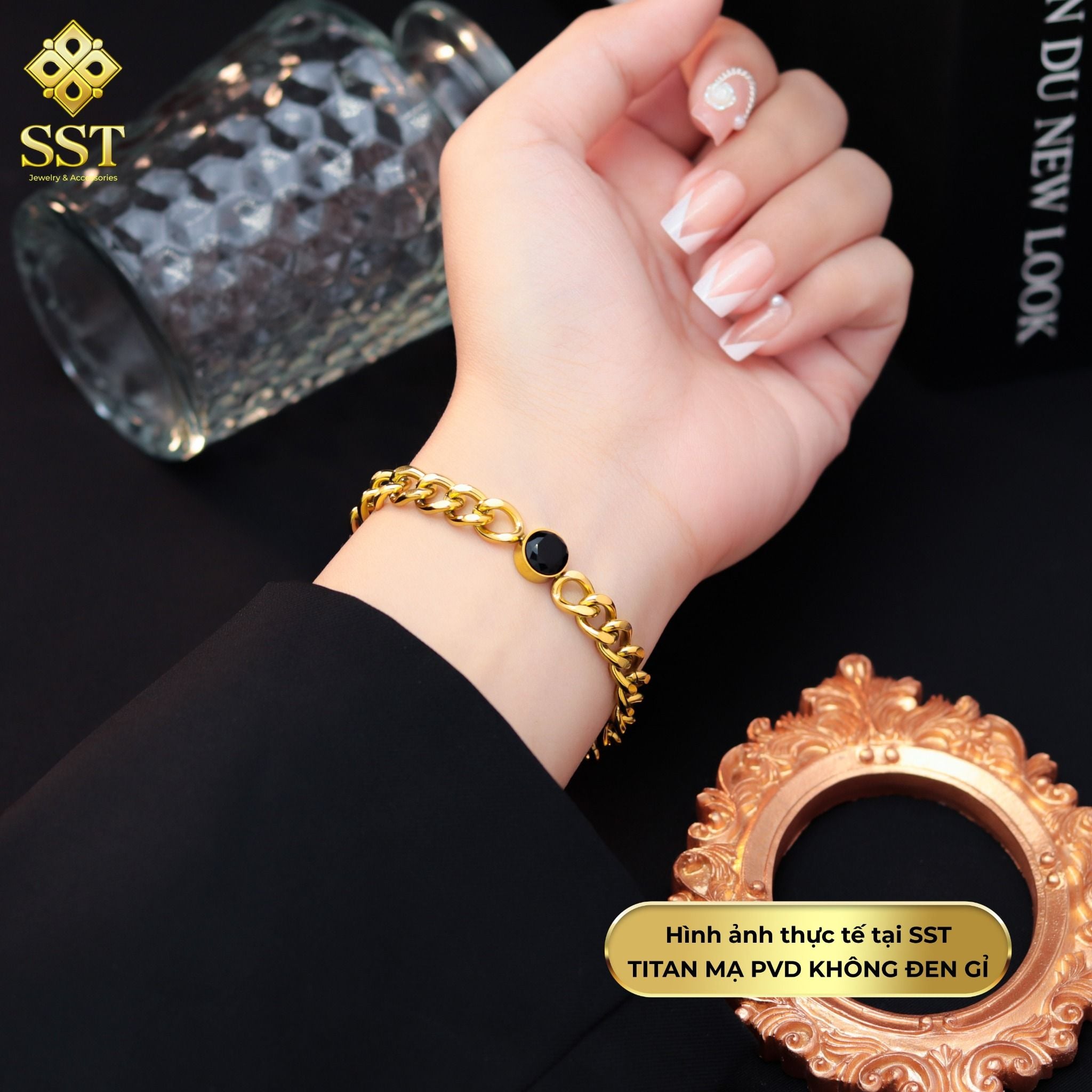 Lắc tay Dây xích phối mặt tròn đen nhỏ Titan cao cấp Không đen gỉ LT76