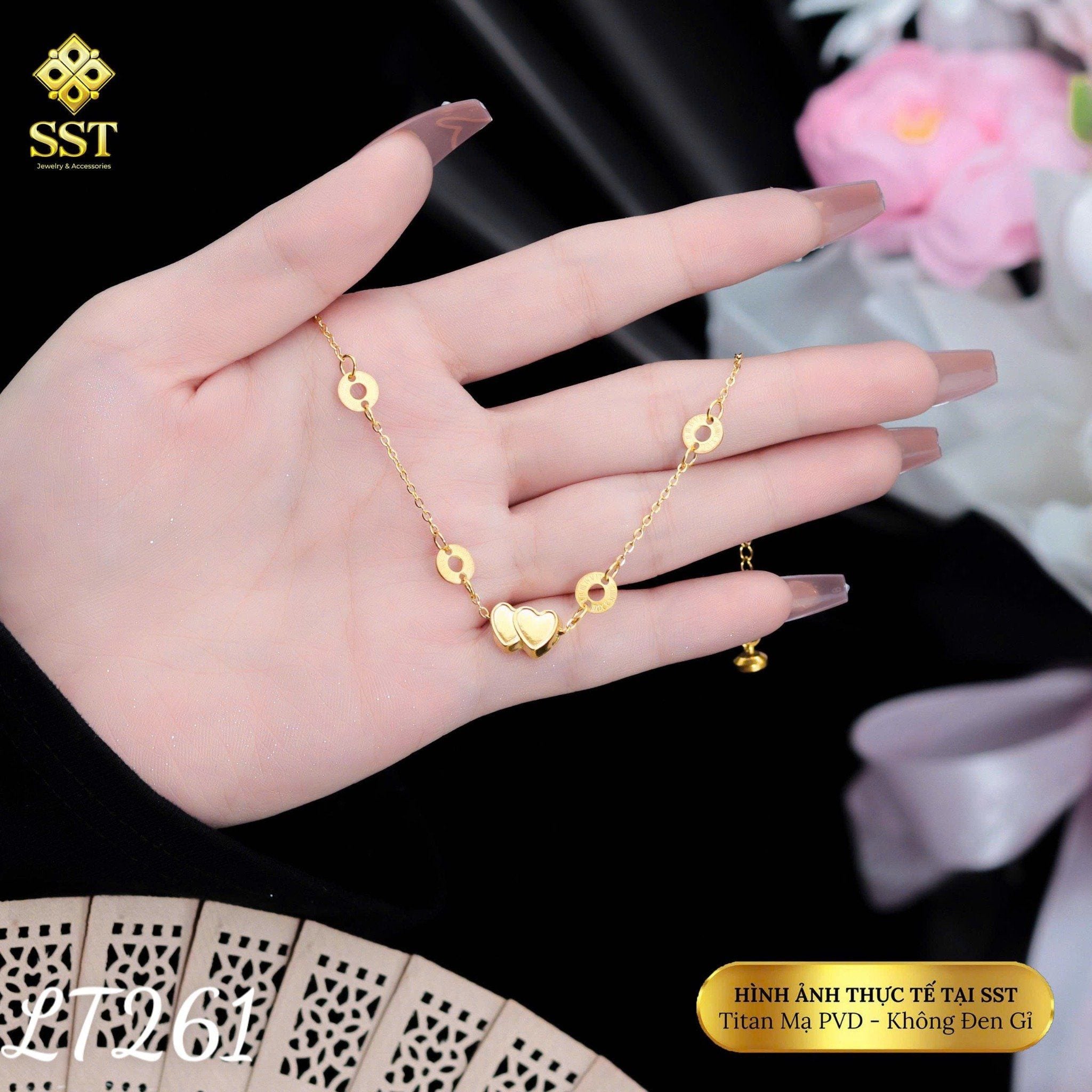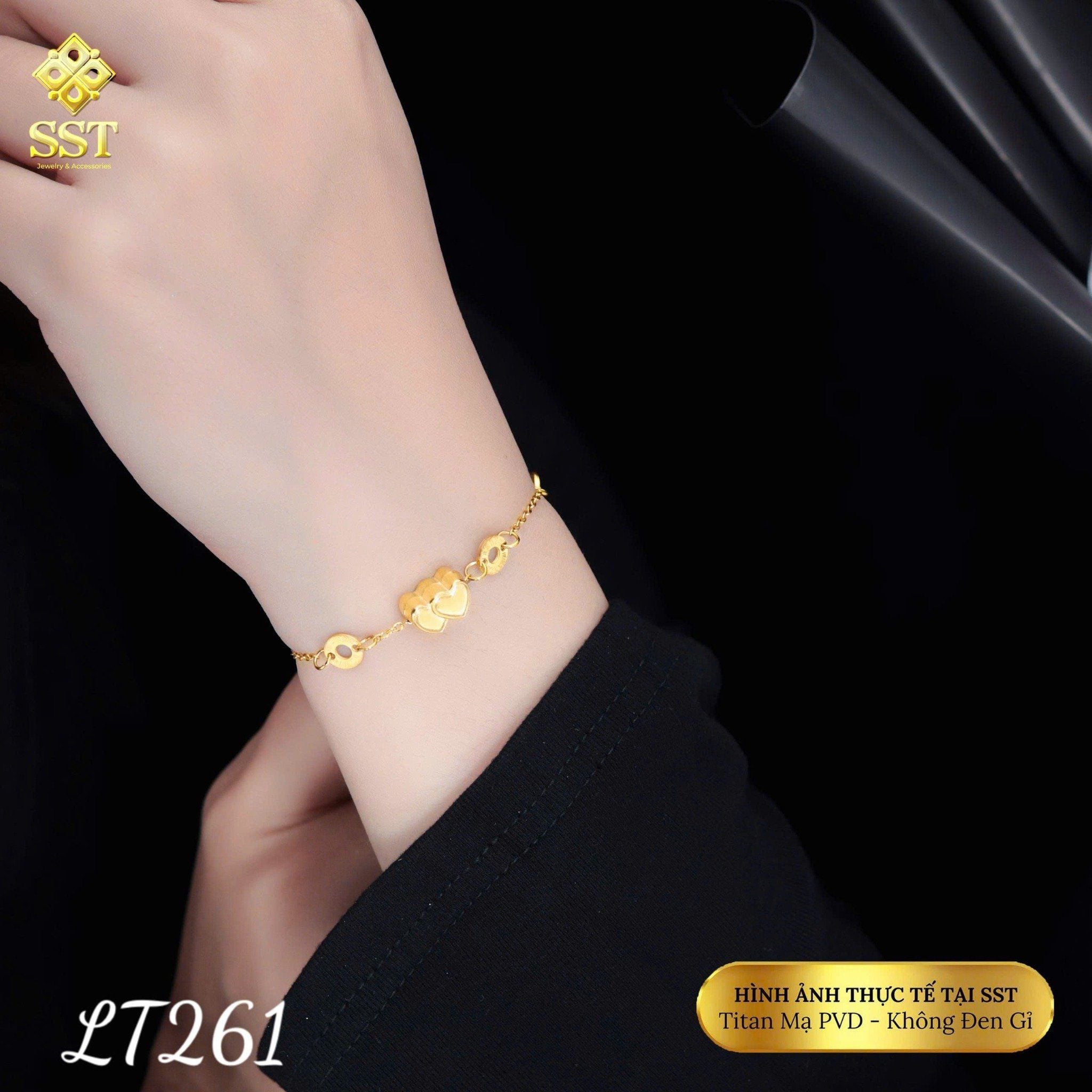 Lắc tay titan SST dây phối Đồng xu tim Đôi LT261
