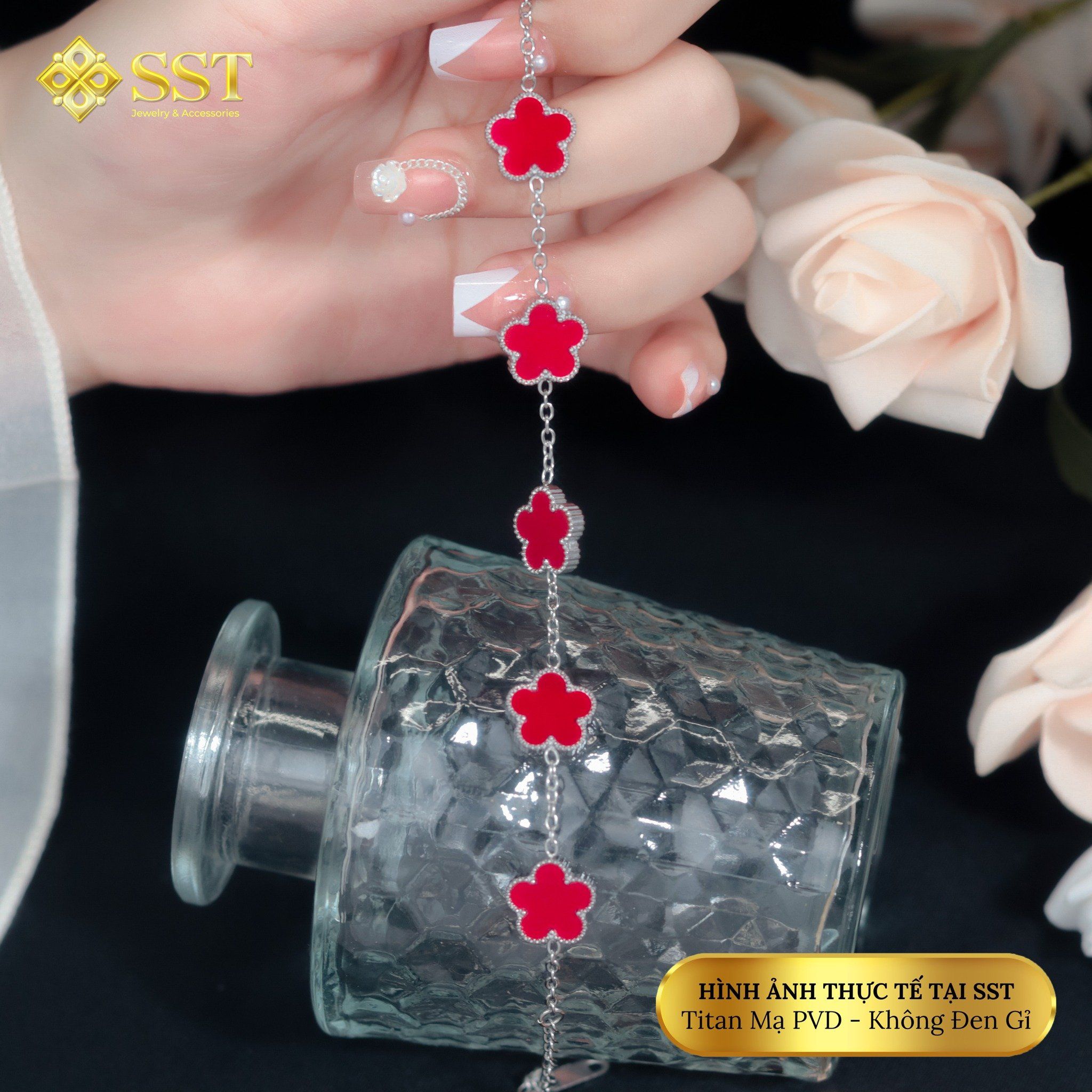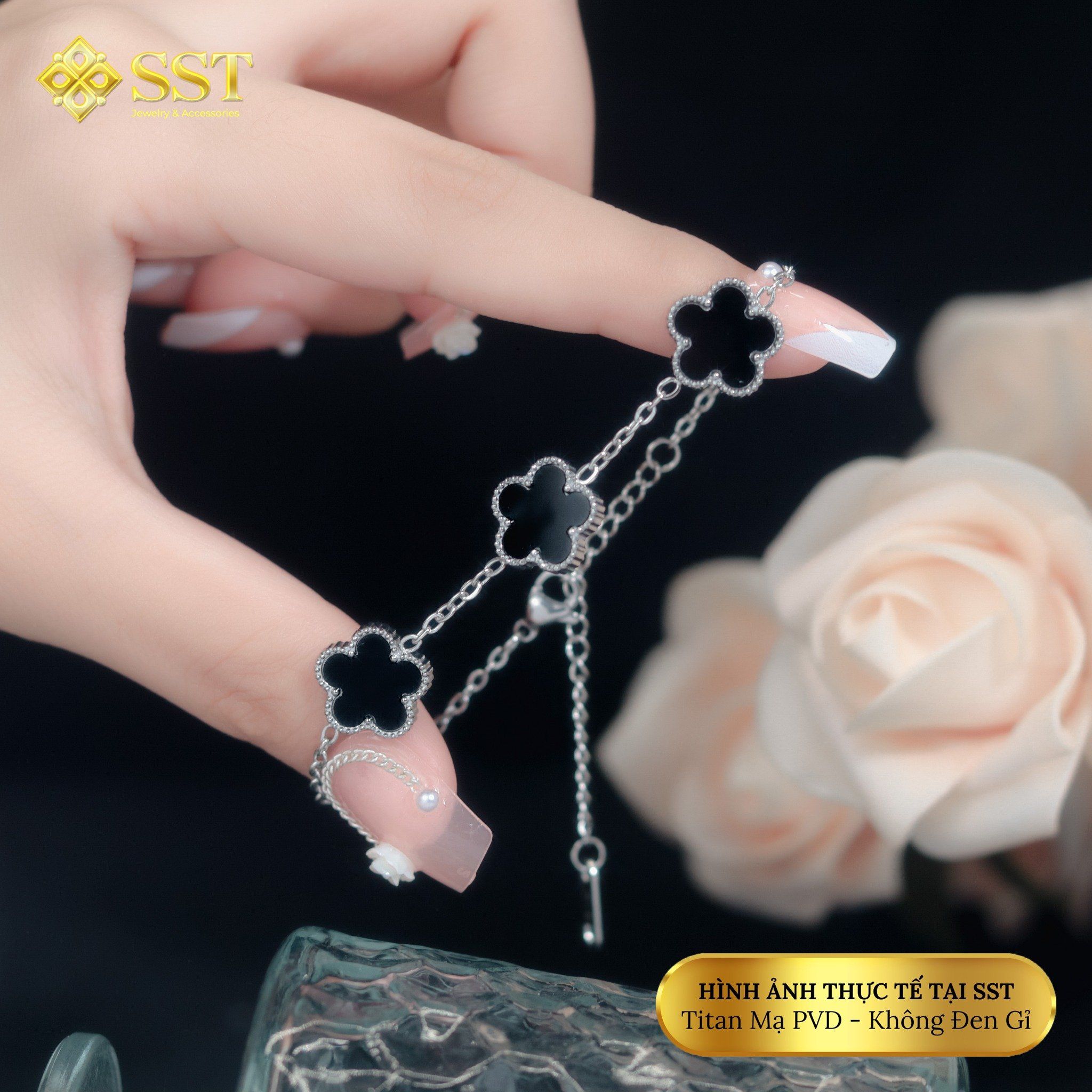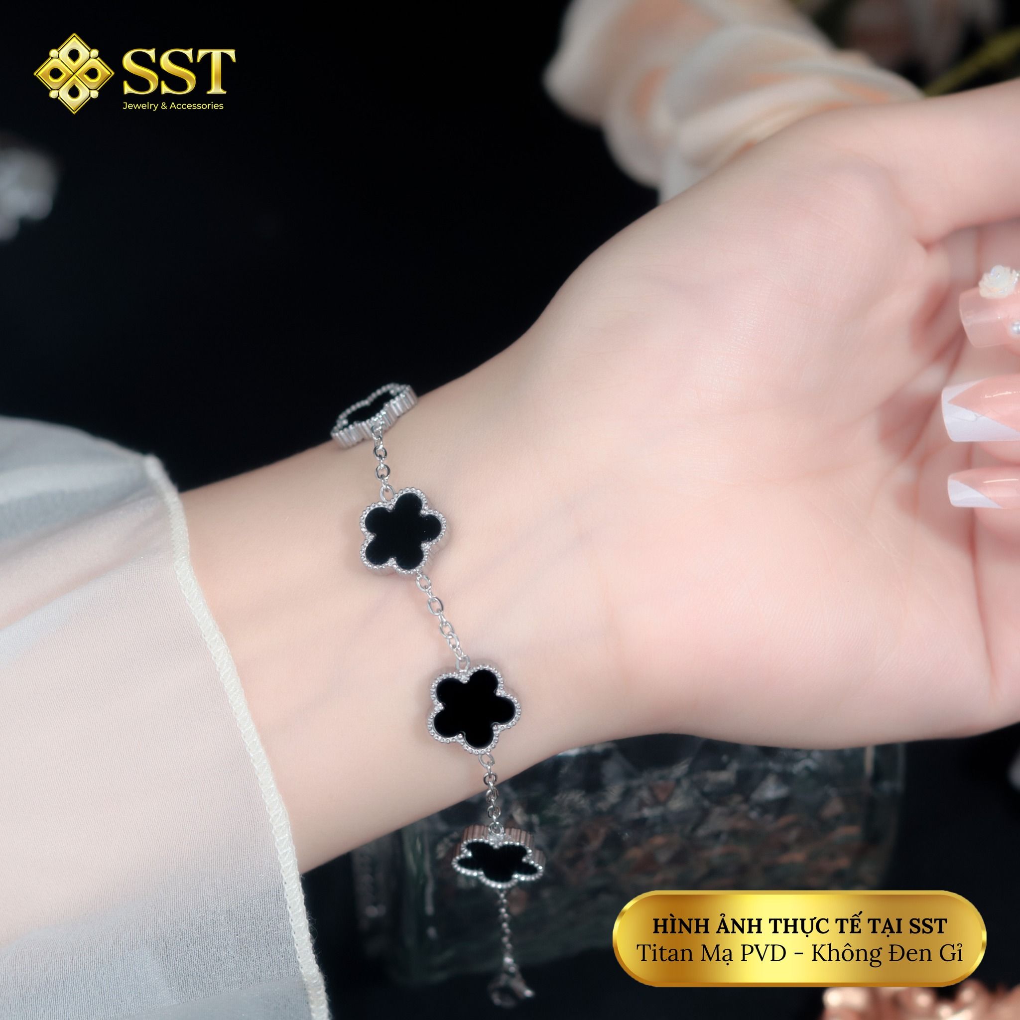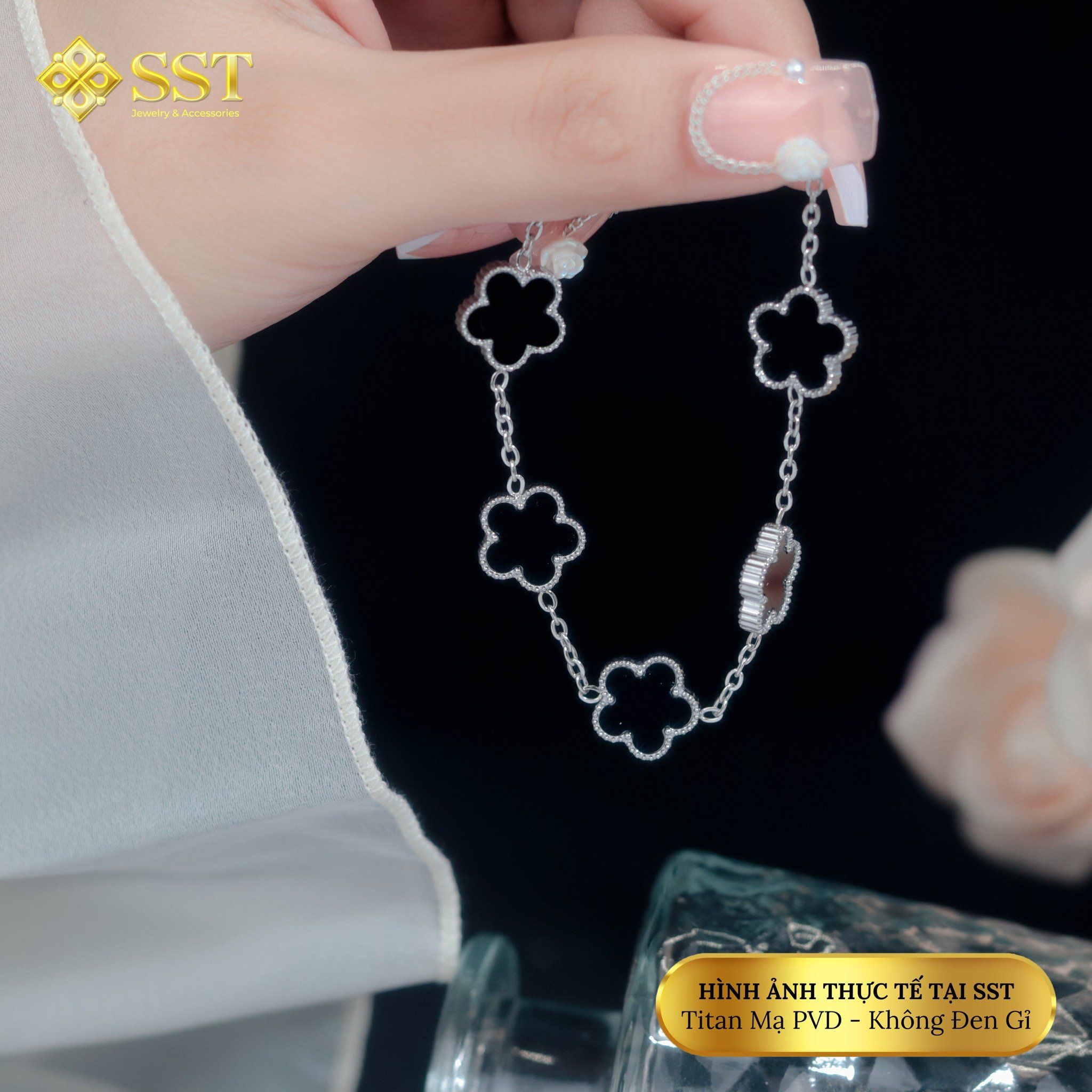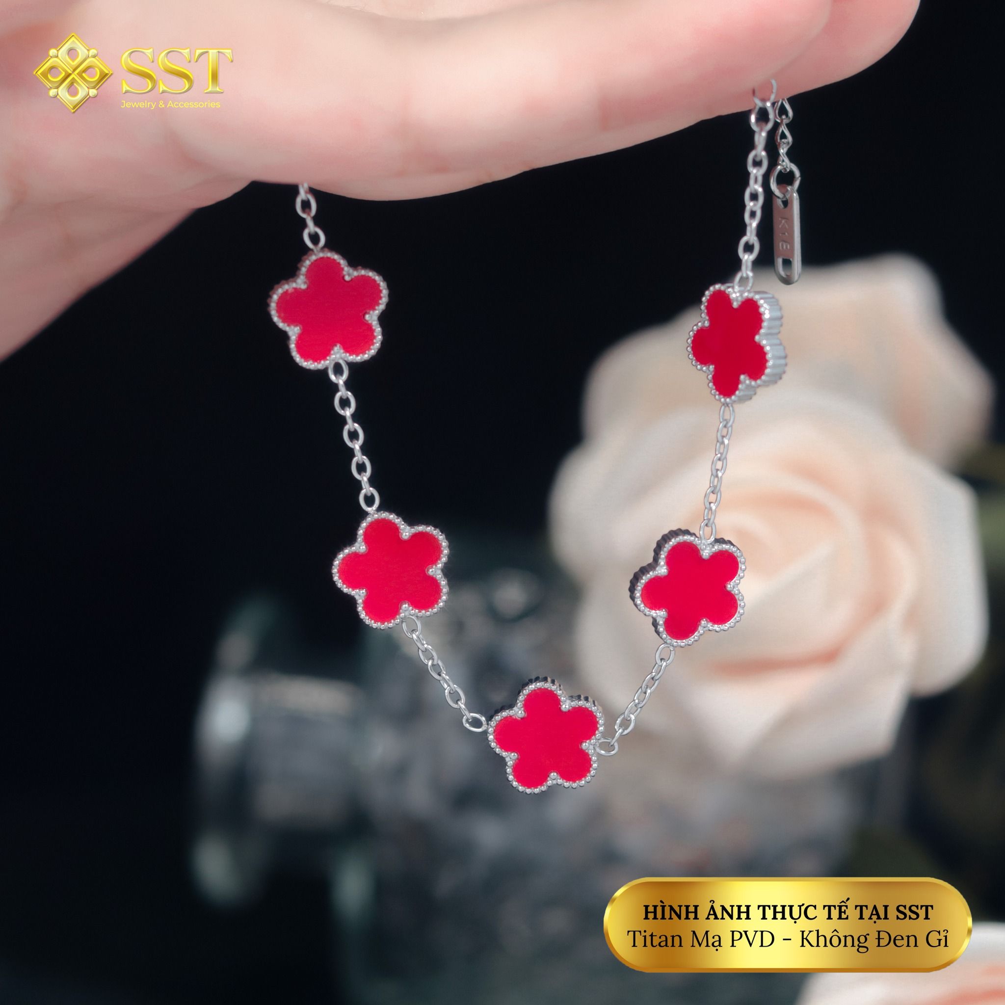 Lắc tay xích mảnh hoa 5 lá,chất liệu titan không rỉ LT254
