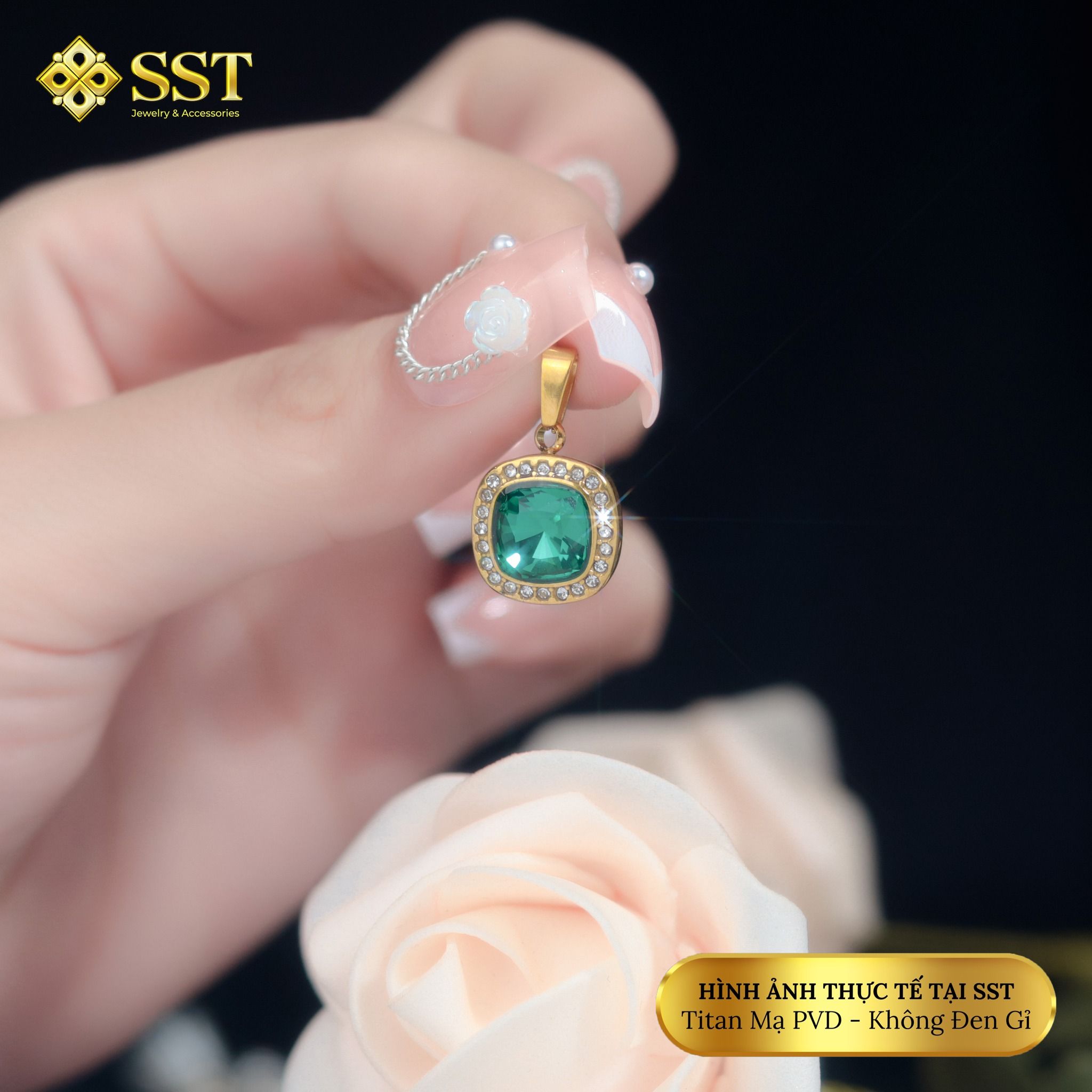 Mặt dây chuyền phối Đá sang trọng titan SST MD15