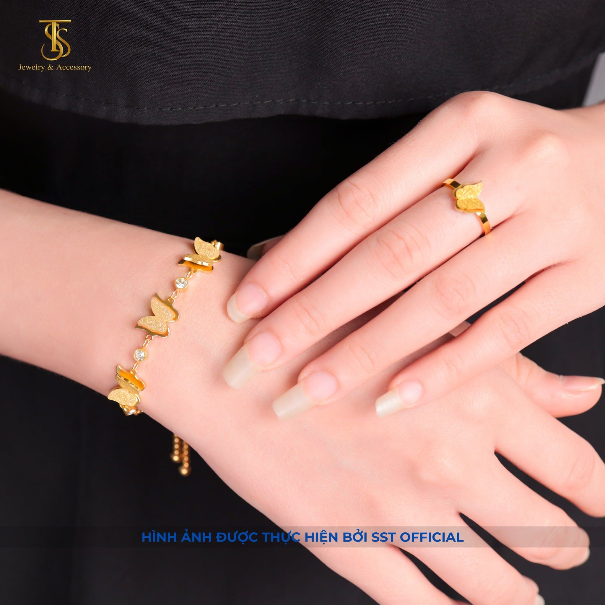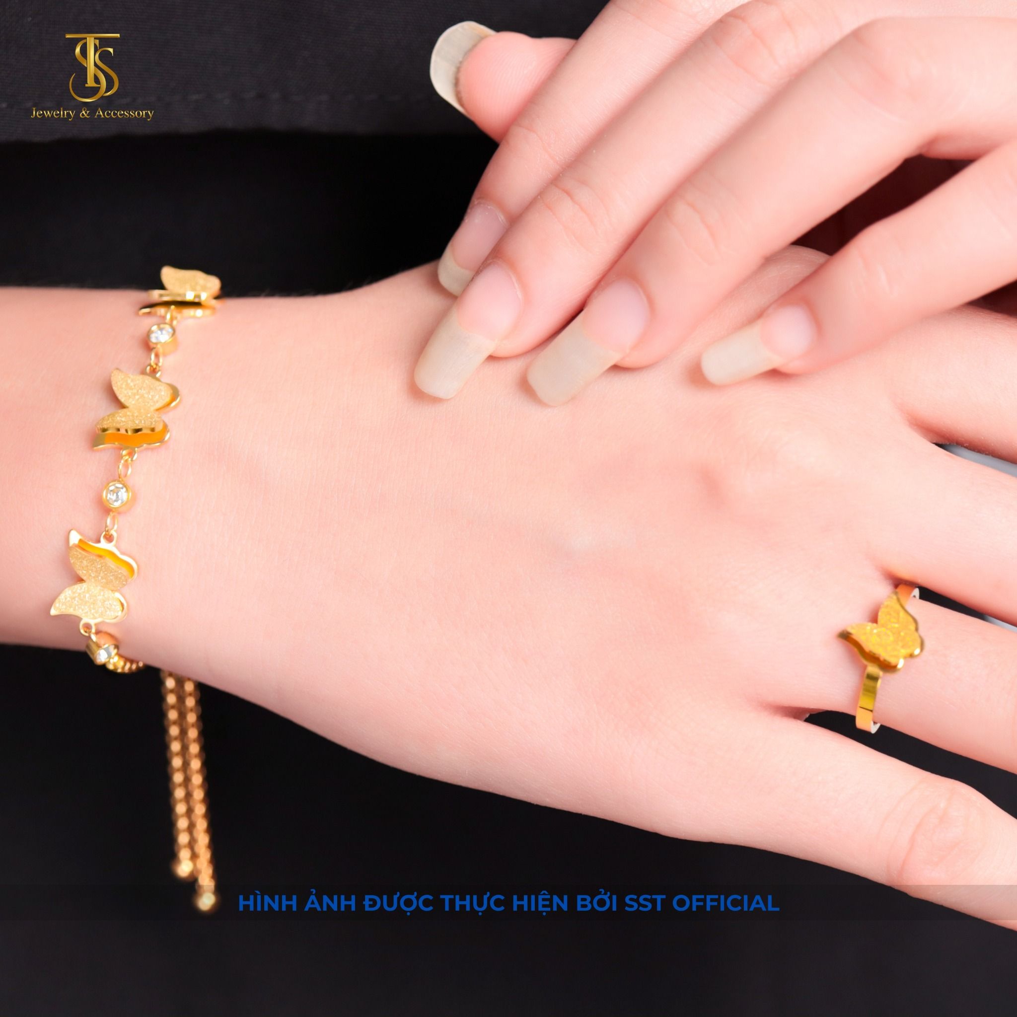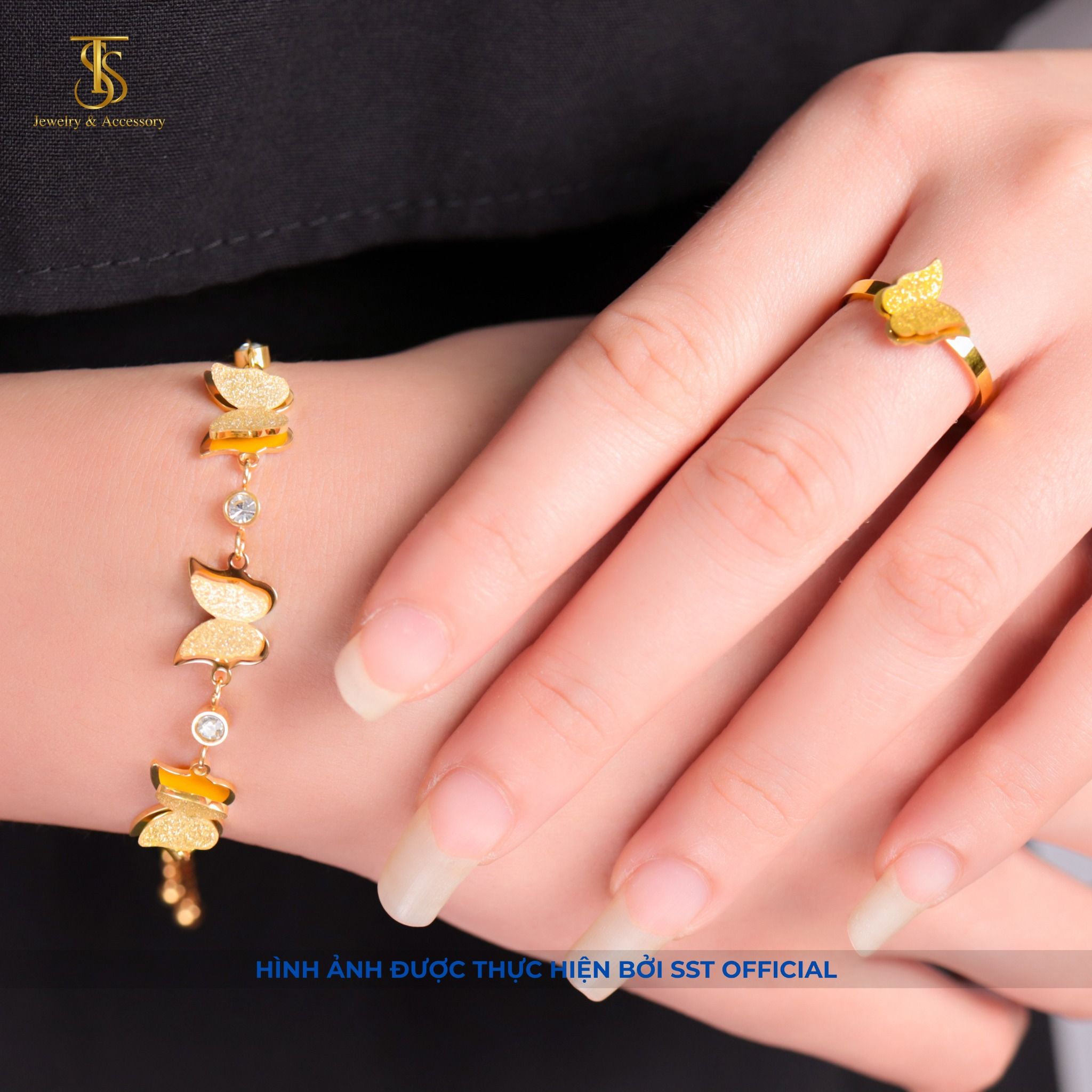 Nhẫn Titan SST Mặt Hồ Điệp kim sa đi tiệc sang trọng Không Đen Gỉ N09