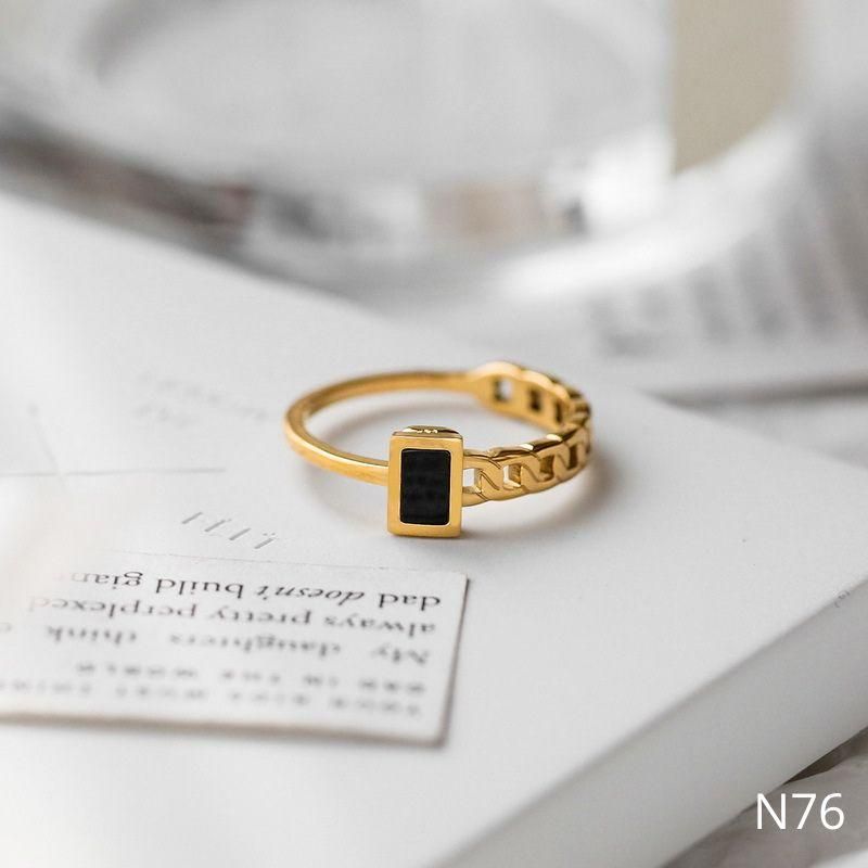 Nhẫn Unisex Titan SST Official Store mặt đá chữ nhật đen thanh lịch Không Đen Gỉ N76
