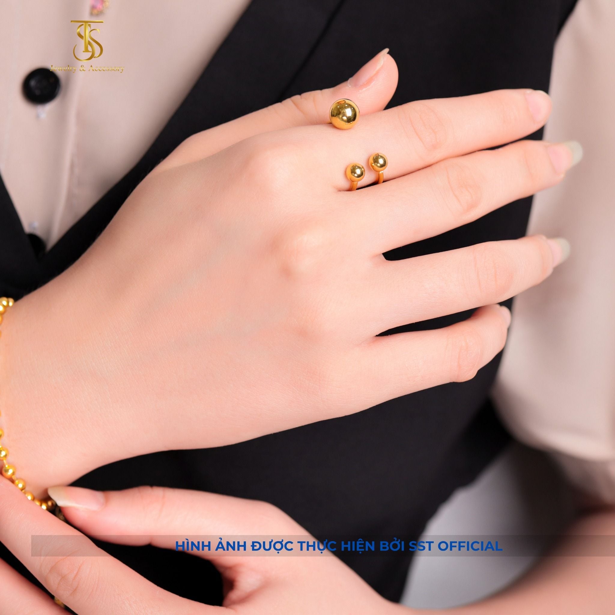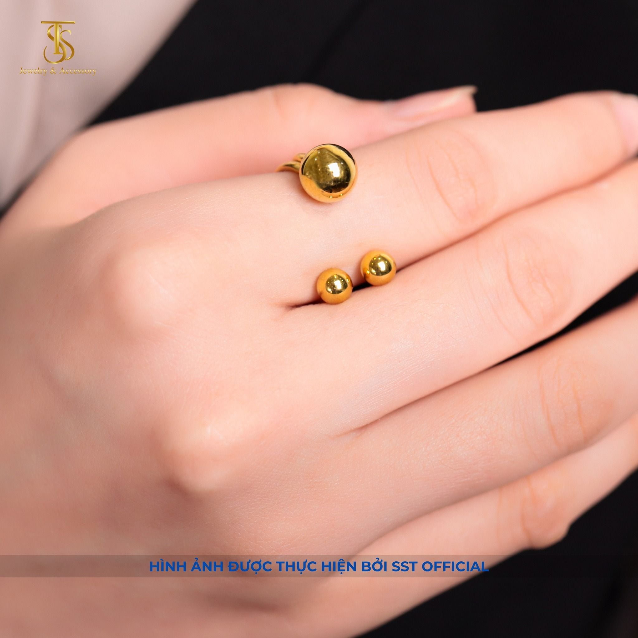 Nhẫn nữ Titan SST Official Store kiểu bi form sang đi tiệc Không Đen Gỉ N135