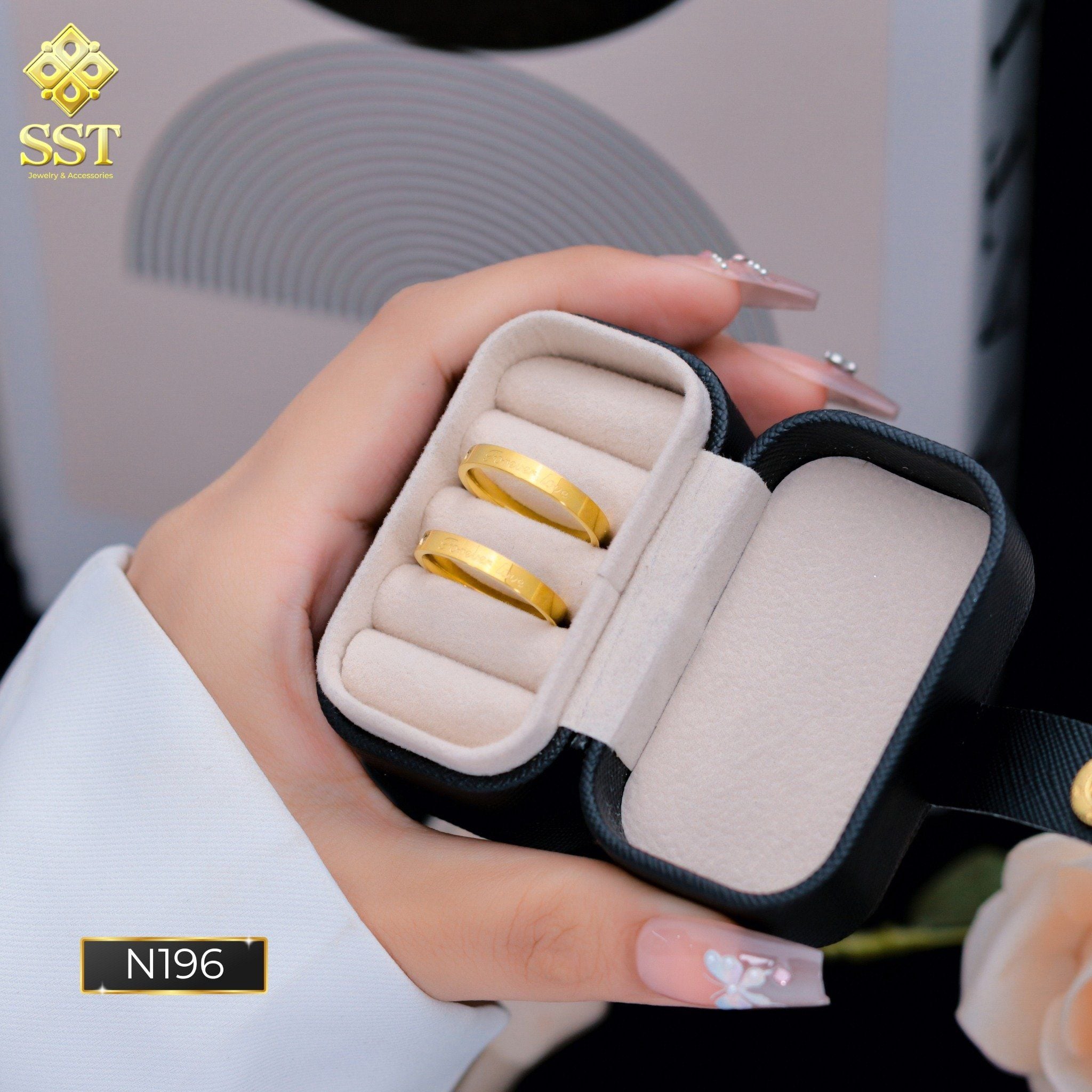 Nhẫn Cặp Titan SST Đính đá khắc chữ Forever Love ý nghĩa Không Đen Gỉ N196