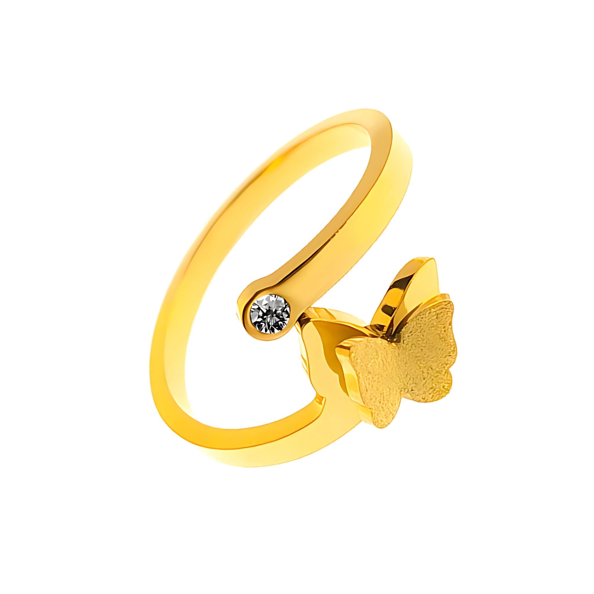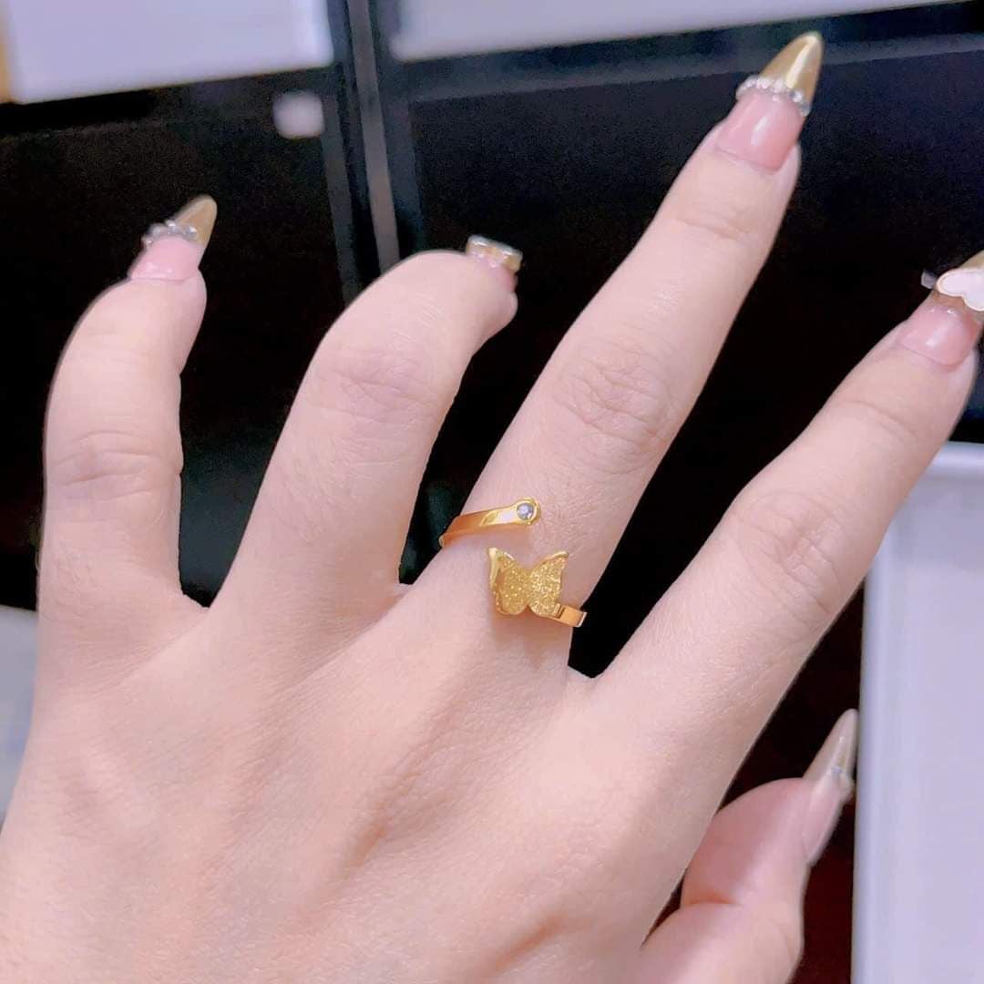 Nhẫn Titan SST Kiểu Hồ Điệp kim sa hở đính đá thanh lịch Không Đen Gỉ N39