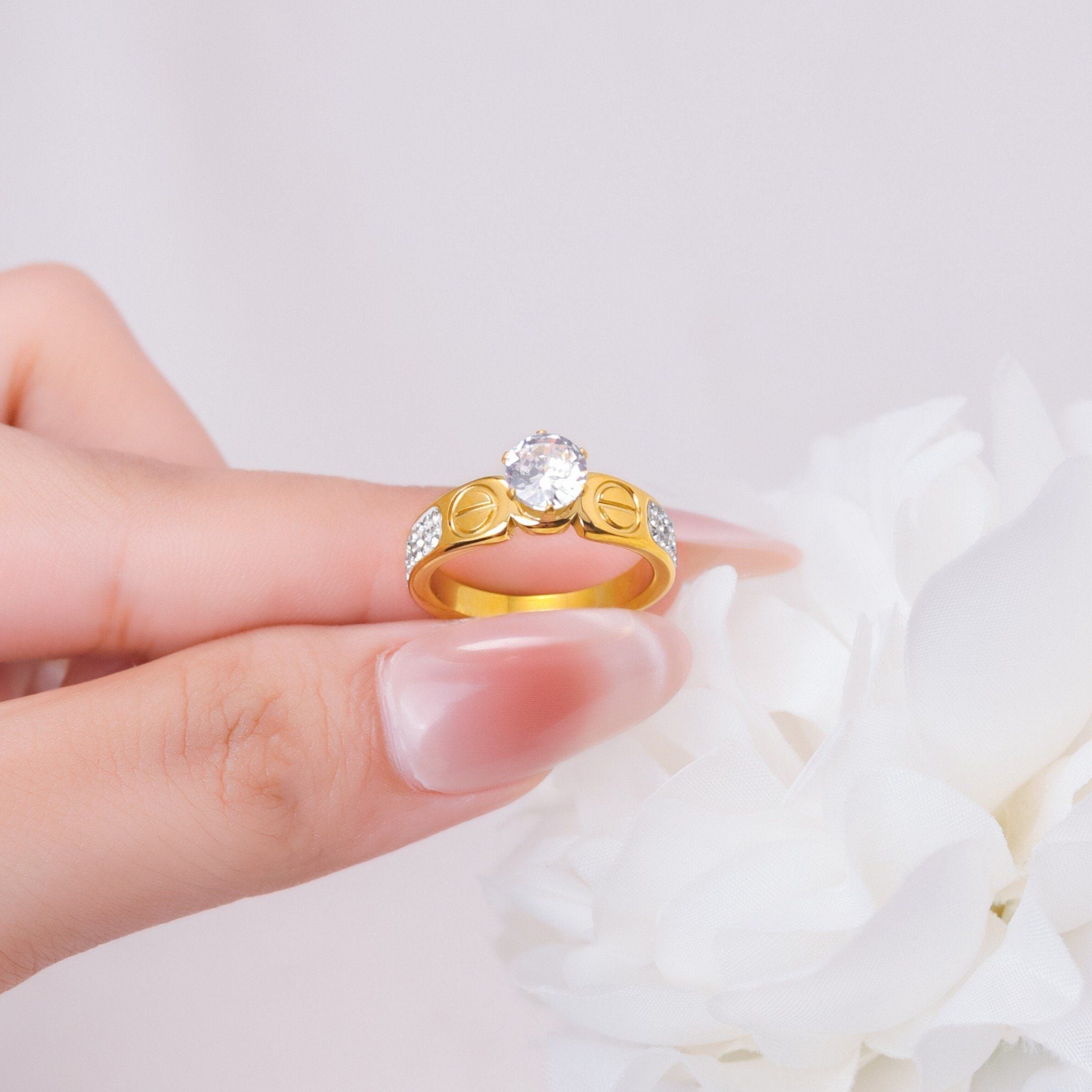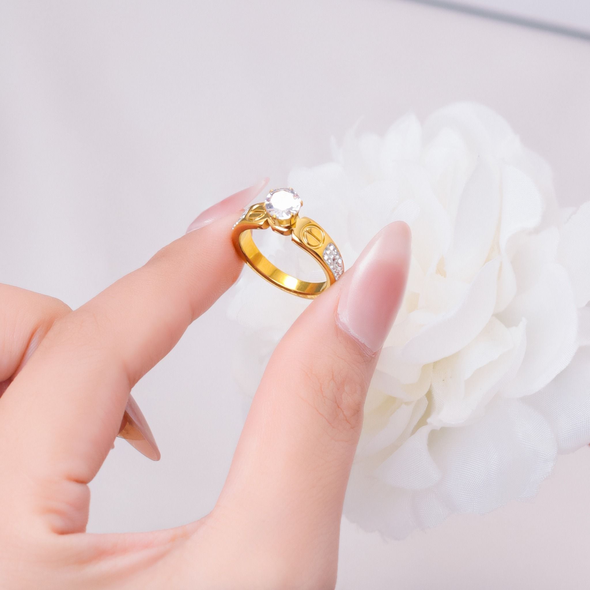 Nhẫn Titan SST Kiểu đi tiệc phối đá sang trọng Không Đen Gỉ N221